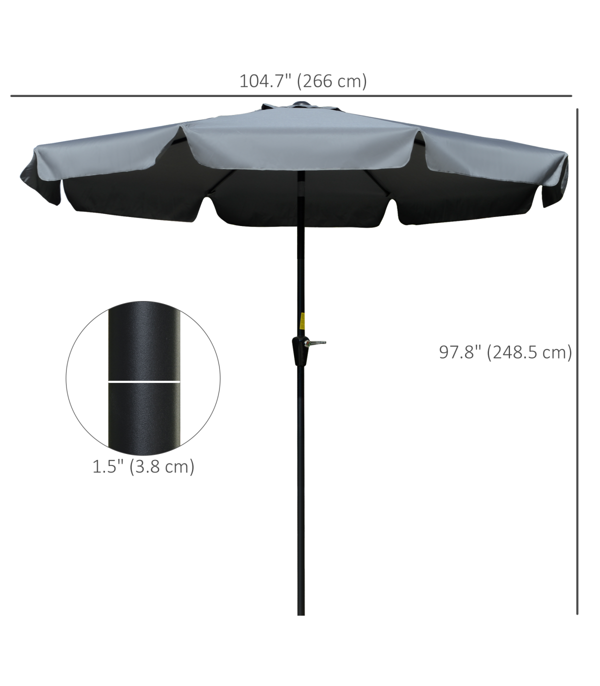 - • Umbrella Pole Diameter: 1.5" (38mm)