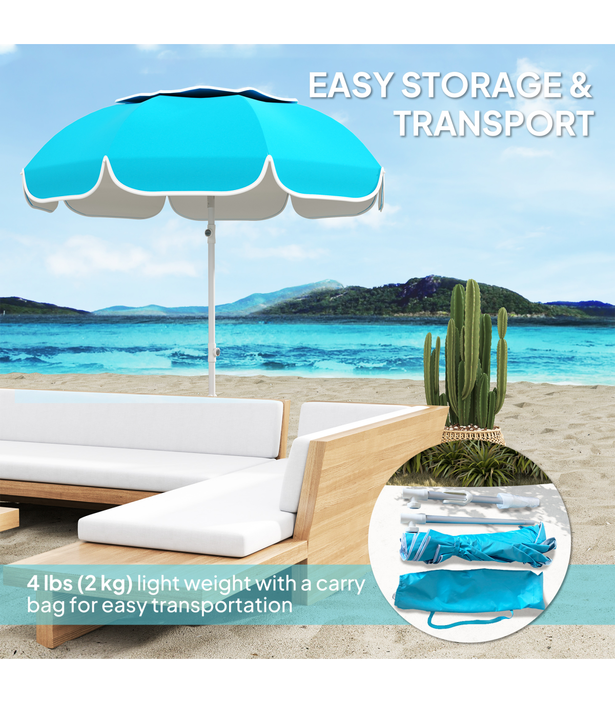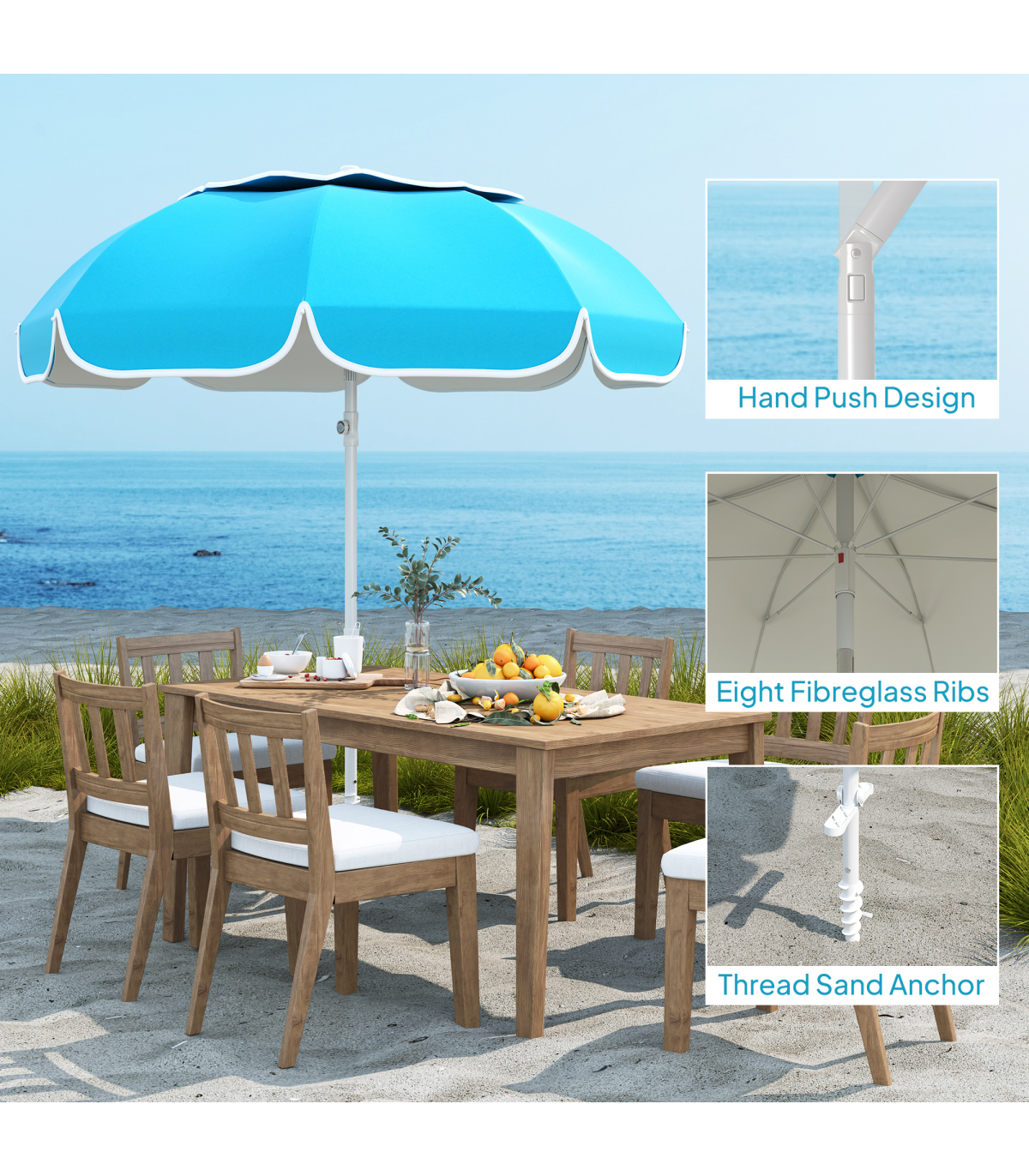 - • Hand push design and sand anchor for easy setup