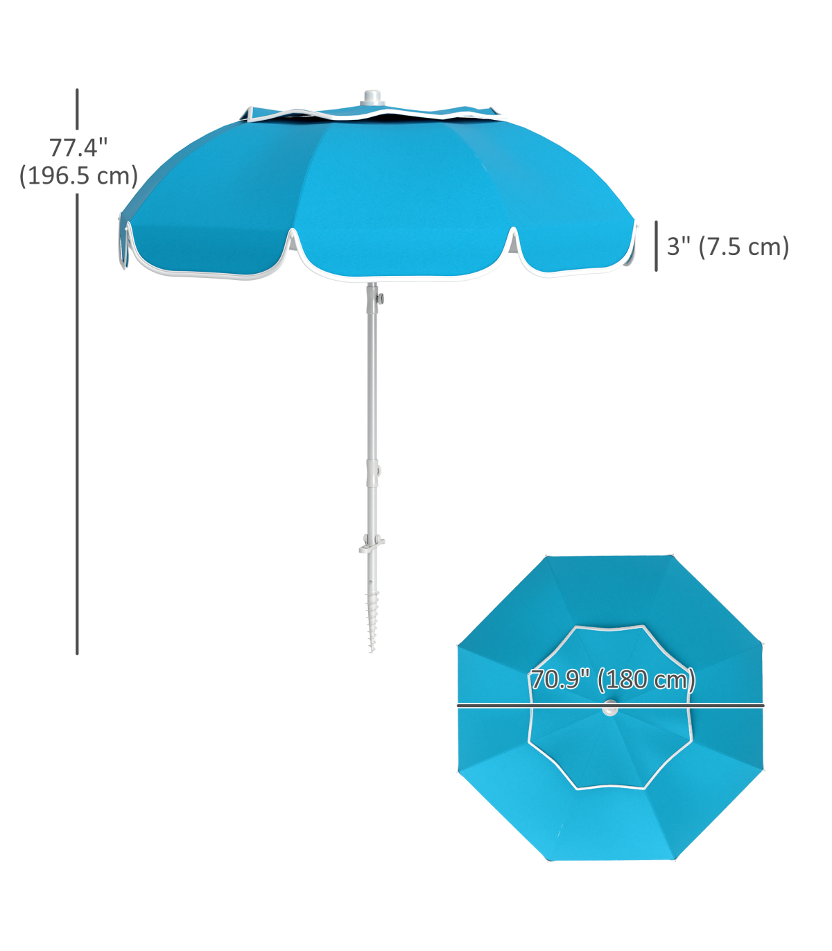 - • Overall Dimension: 70.9" Dia. x 77.4" H (180 x 196.5 cm)