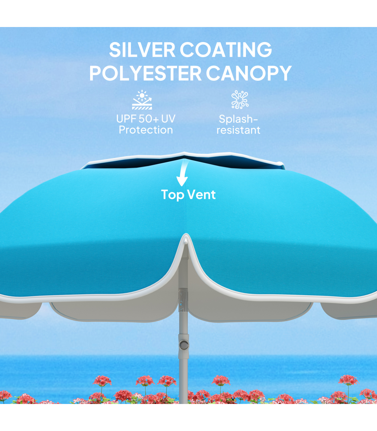 - • Air-vented canopy increases airflow, stabilizing the umbrella