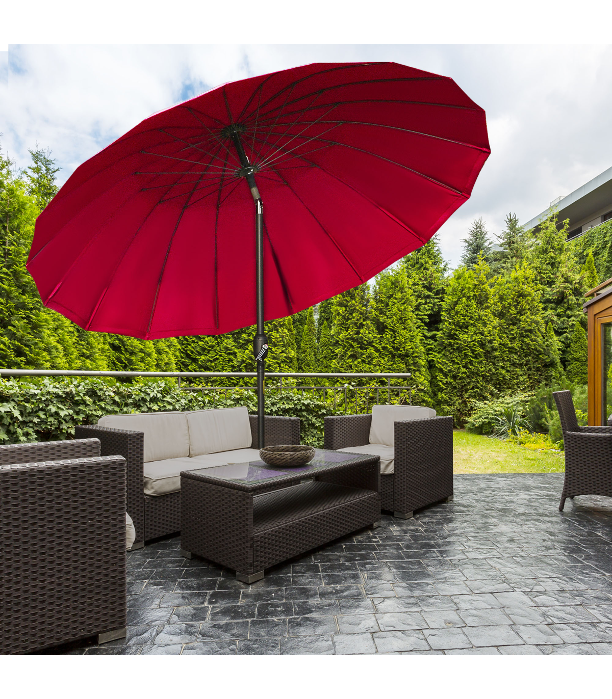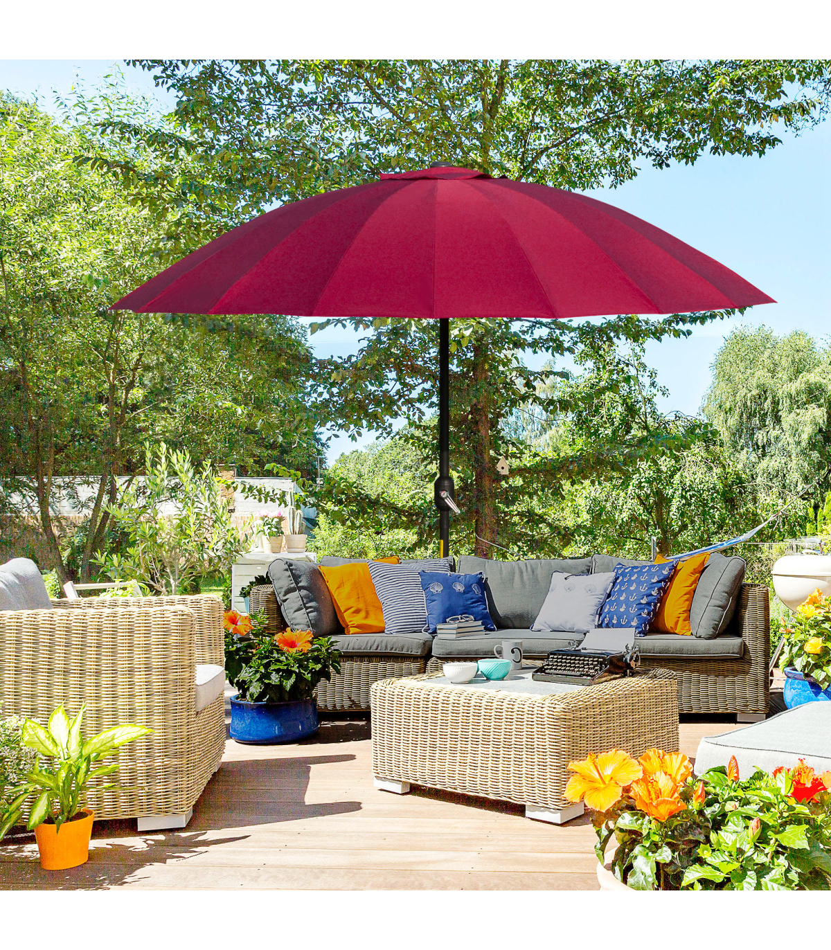 - • Attractive design of this large garden parasol you'll love mixing in with your current outdoor furniture