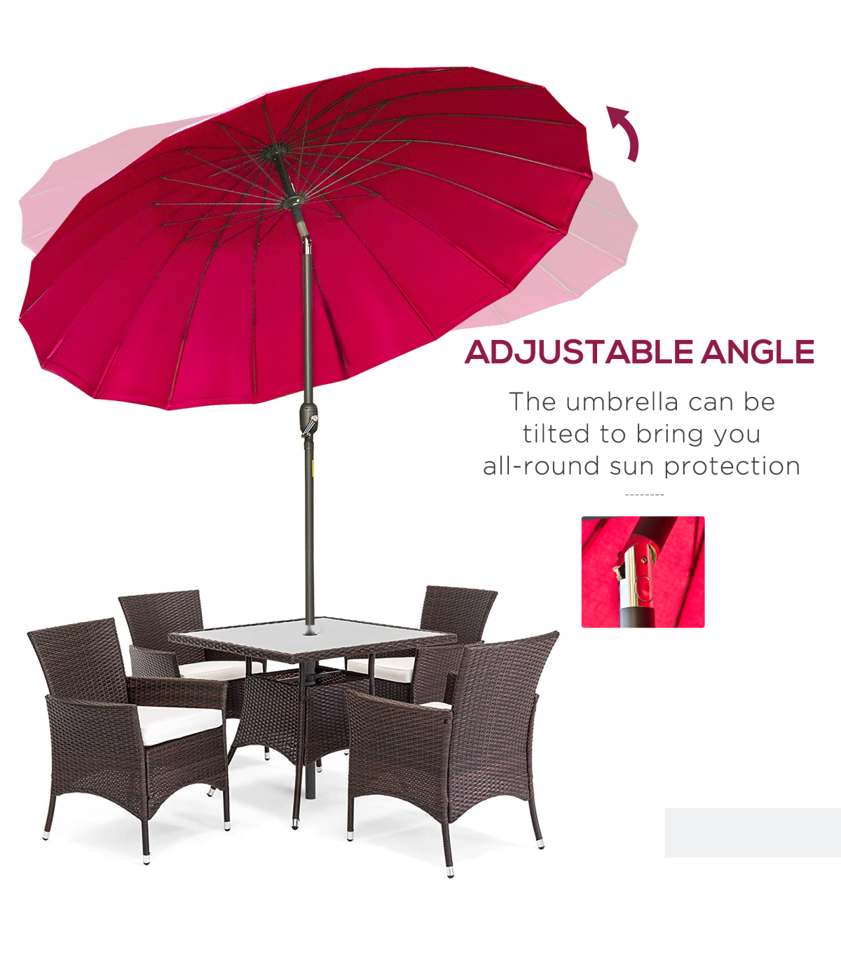 - • Parasol angle easily adjusts with the push button