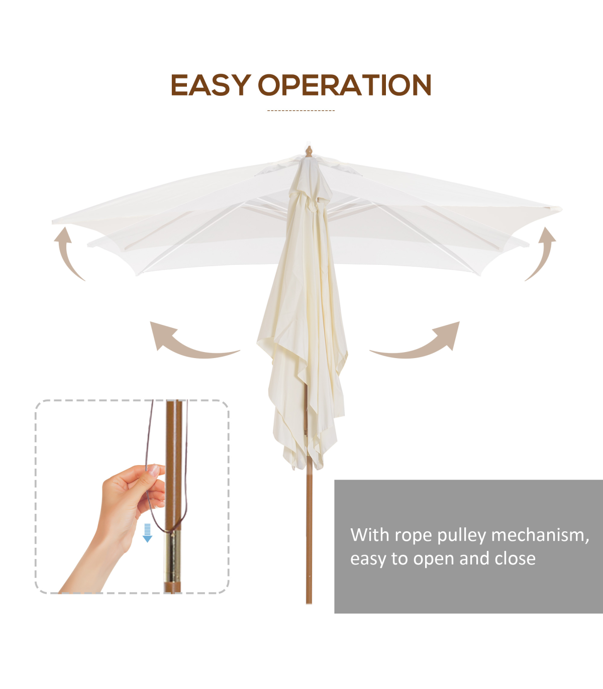 - • Pull rope with pulley for easy opening and closing with 4 fixed points