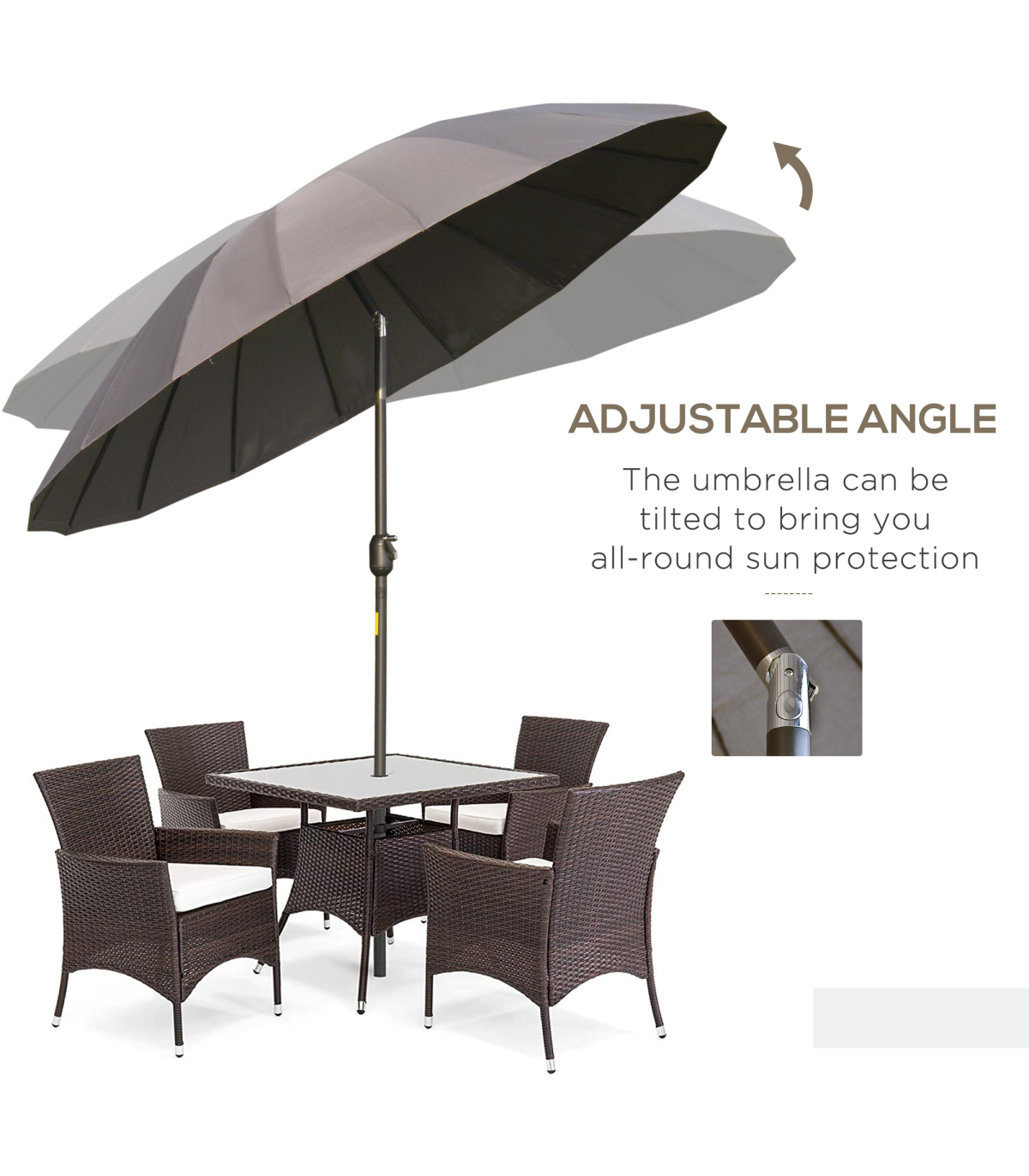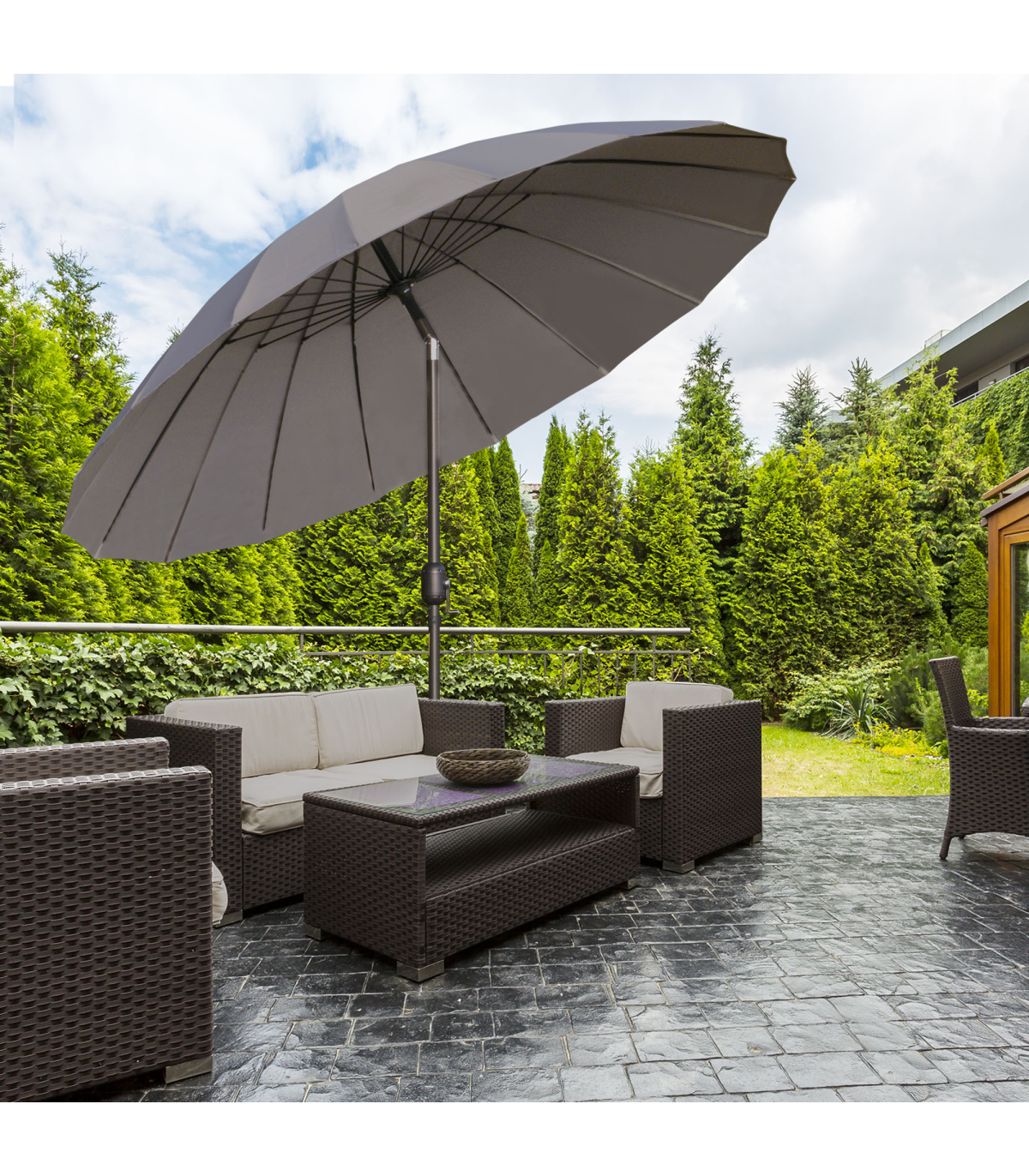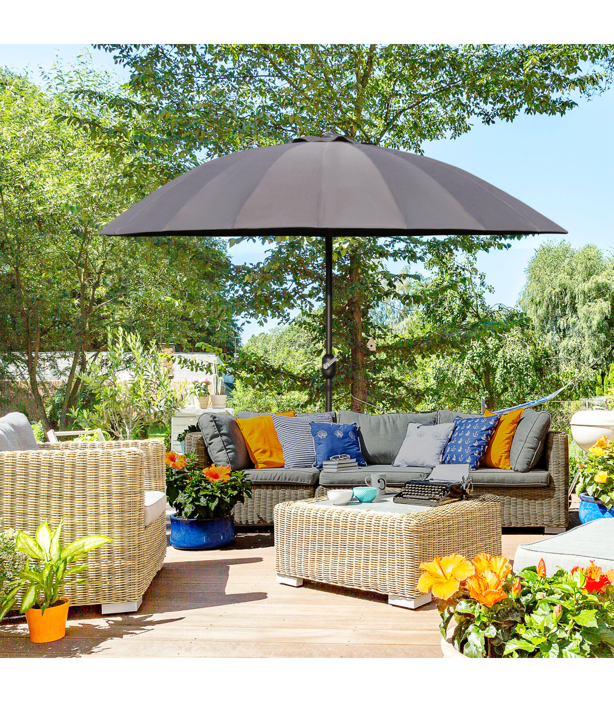 - • Attractive design of this large garden parasol you'll love mixing in with your current outdoor furniture