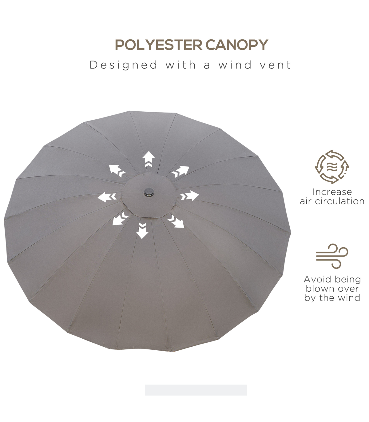 - • Vent on canopy top for better airflow, helps reduce any wind from lifting the parasol up