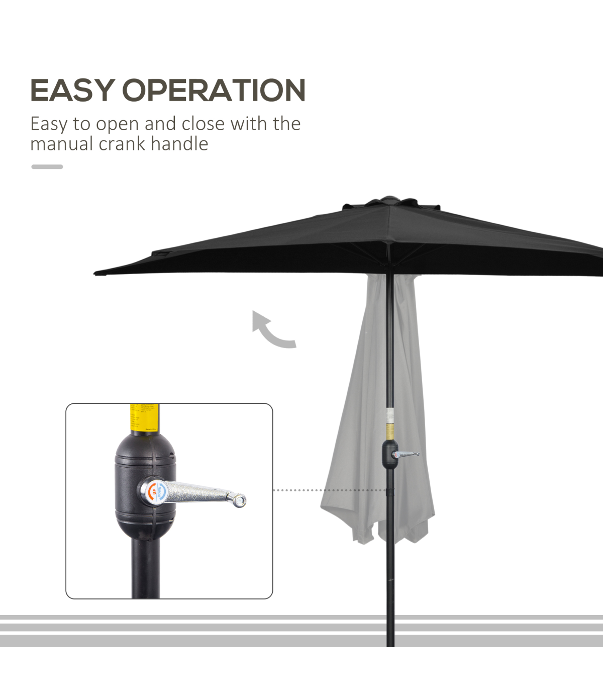 - • Convenient set up and take down with the crank handle