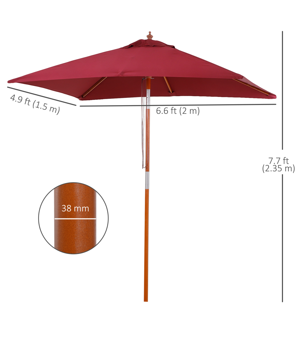 - • Rust resistant fir pole with 6 bamboo frame supports a water and UV resistant polyester canopy