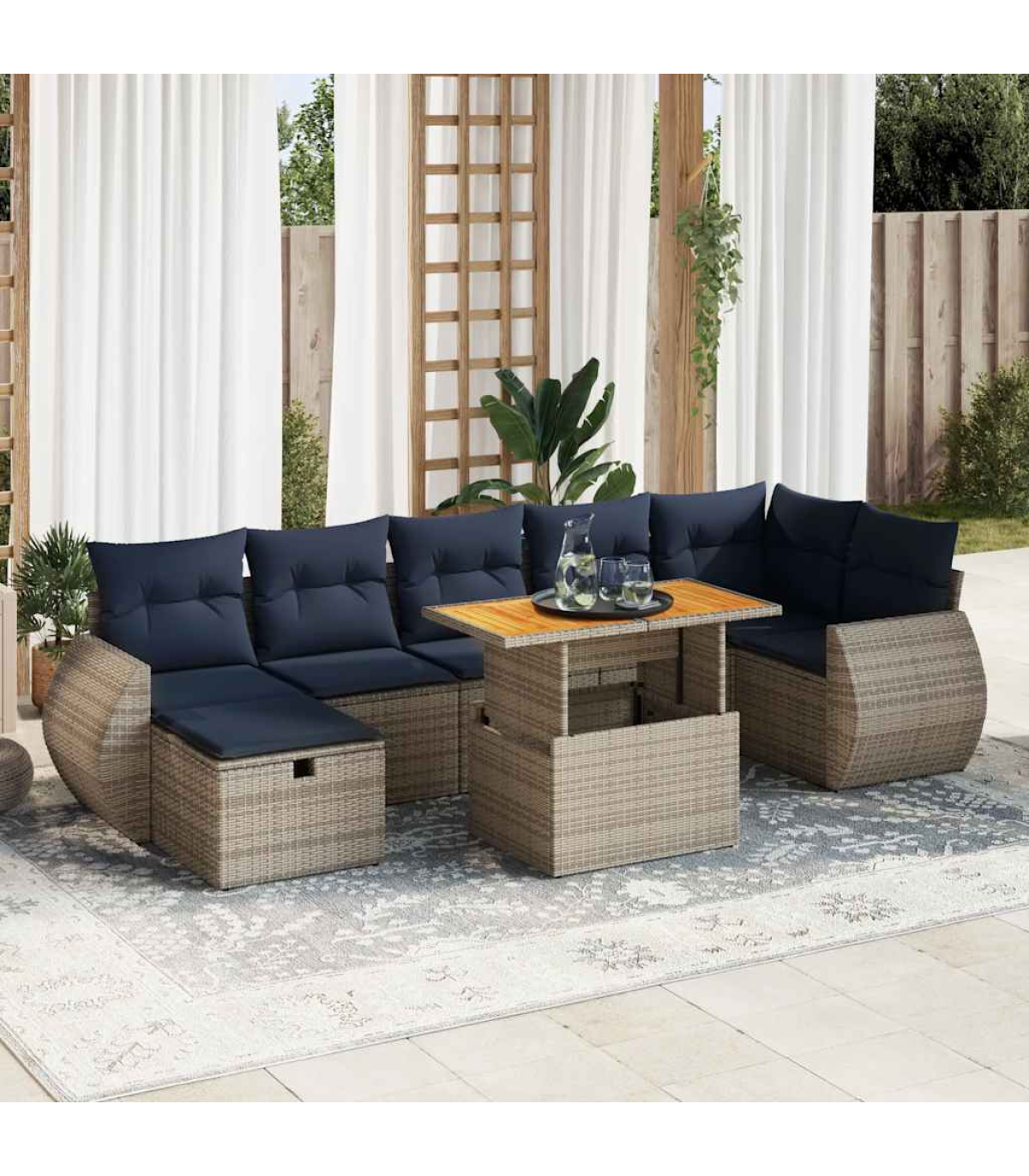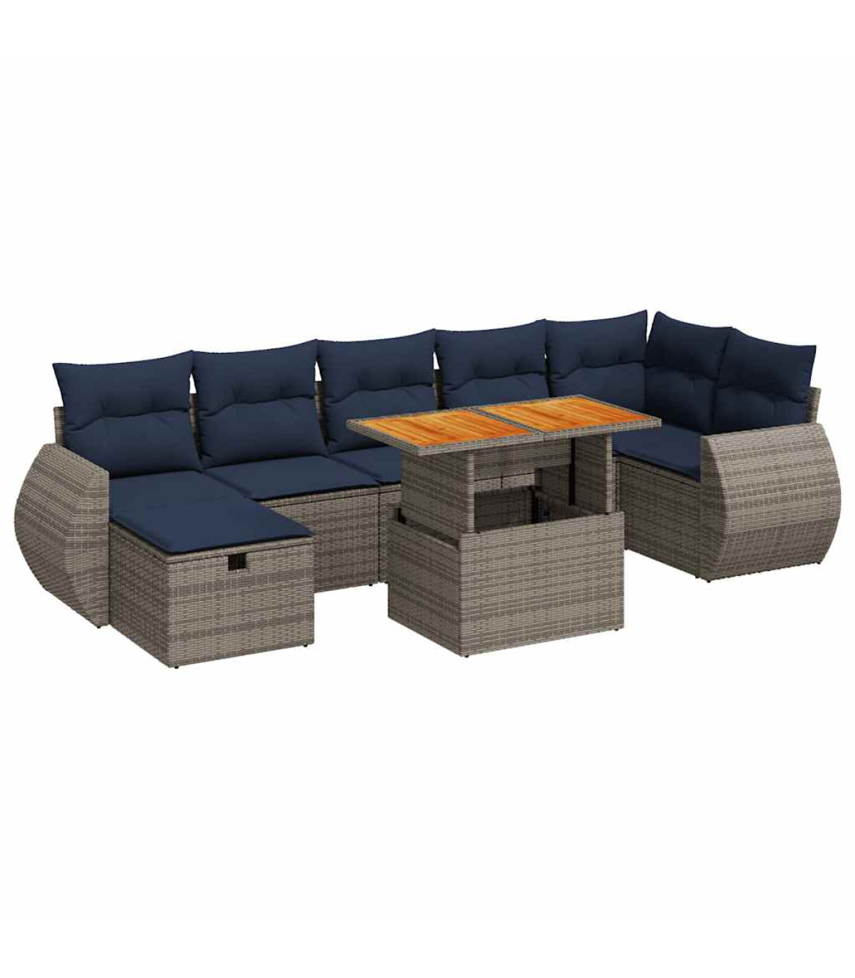 vidaXL 8 Piece Garden Sofa Set with Cushions Grey Poly Rattan Acacia