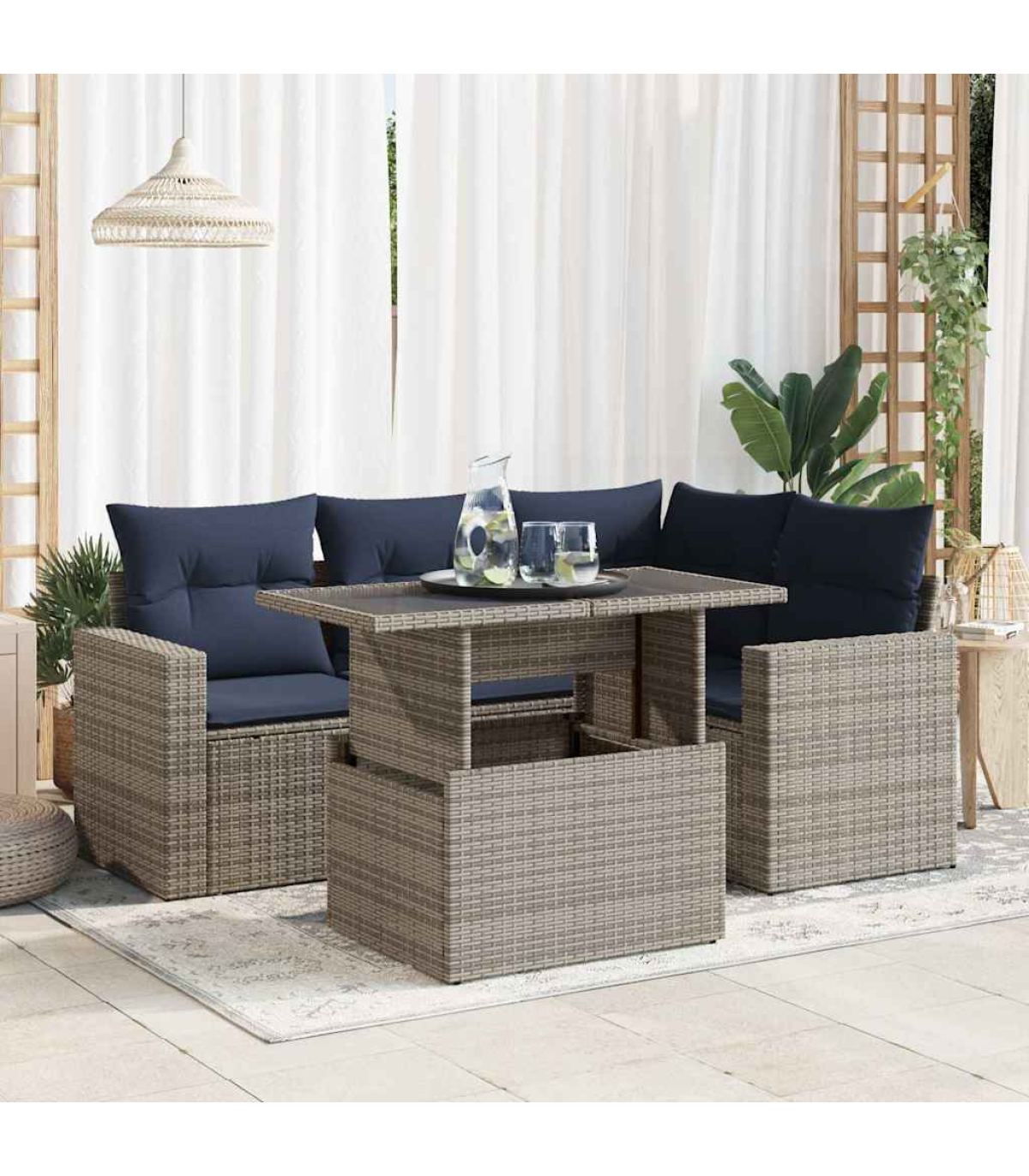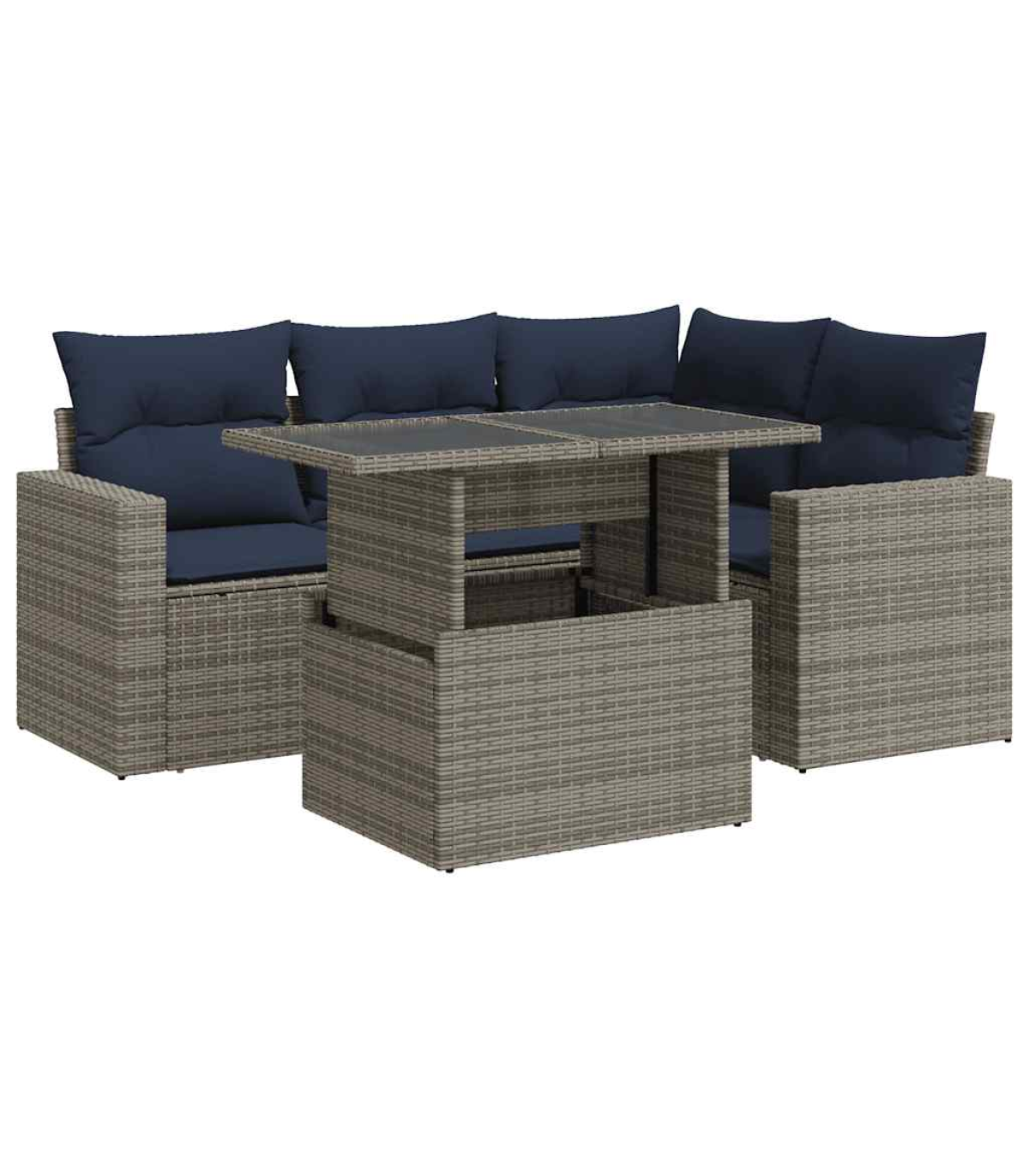vidaXL 5 Piece Garden Sofa Set with Cushions Grey Poly Rattan Acacia