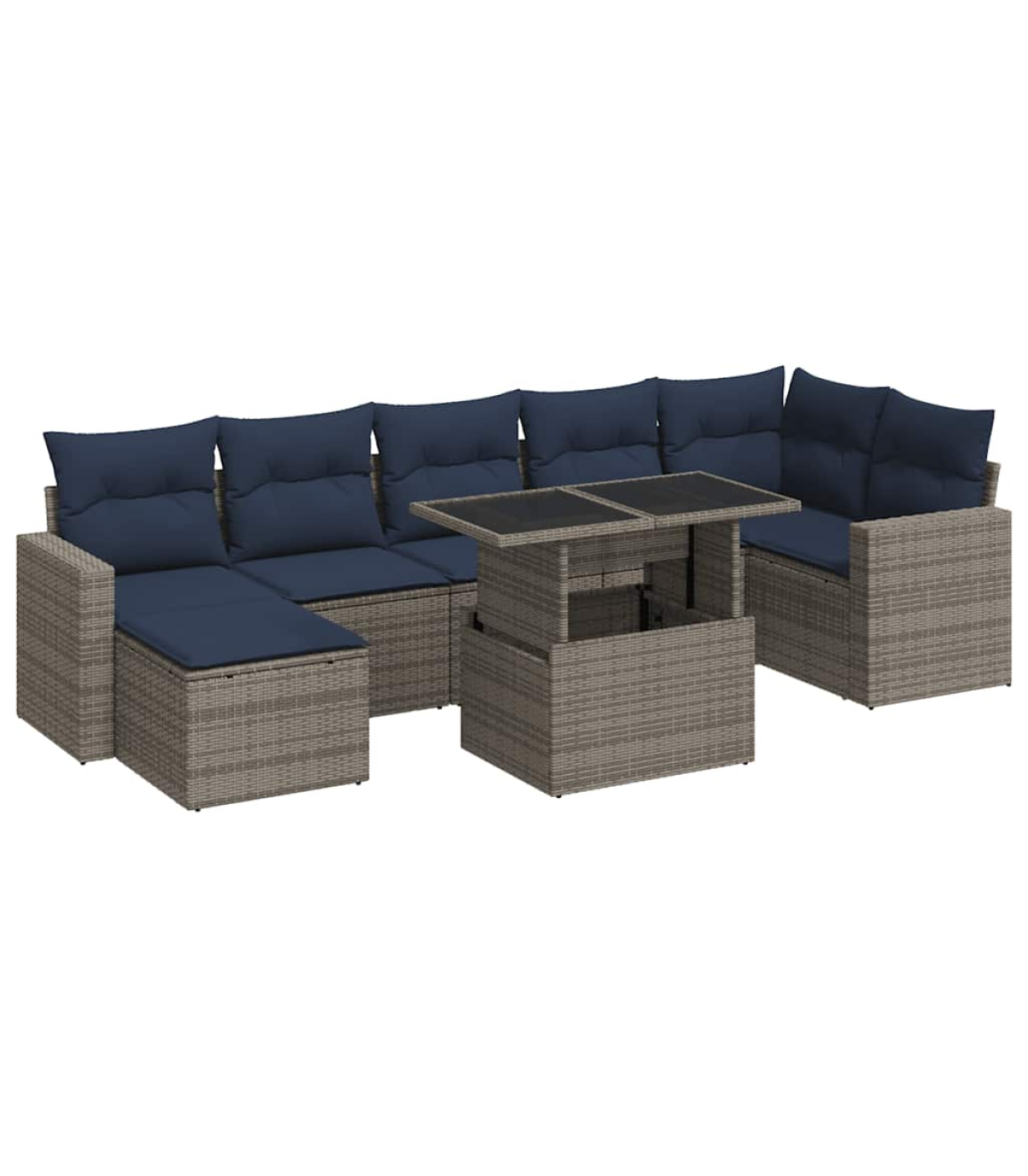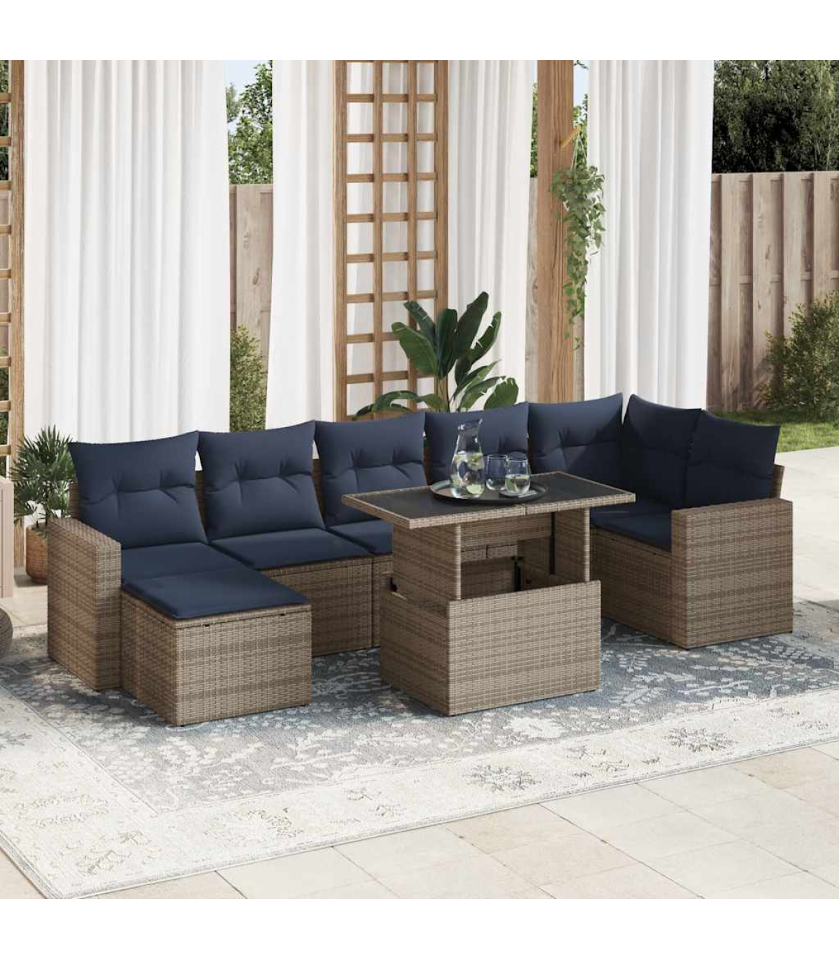 vidaXL 7 Piece Garden Sofa Set with Cushions Grey Poly Rattan Acacia
