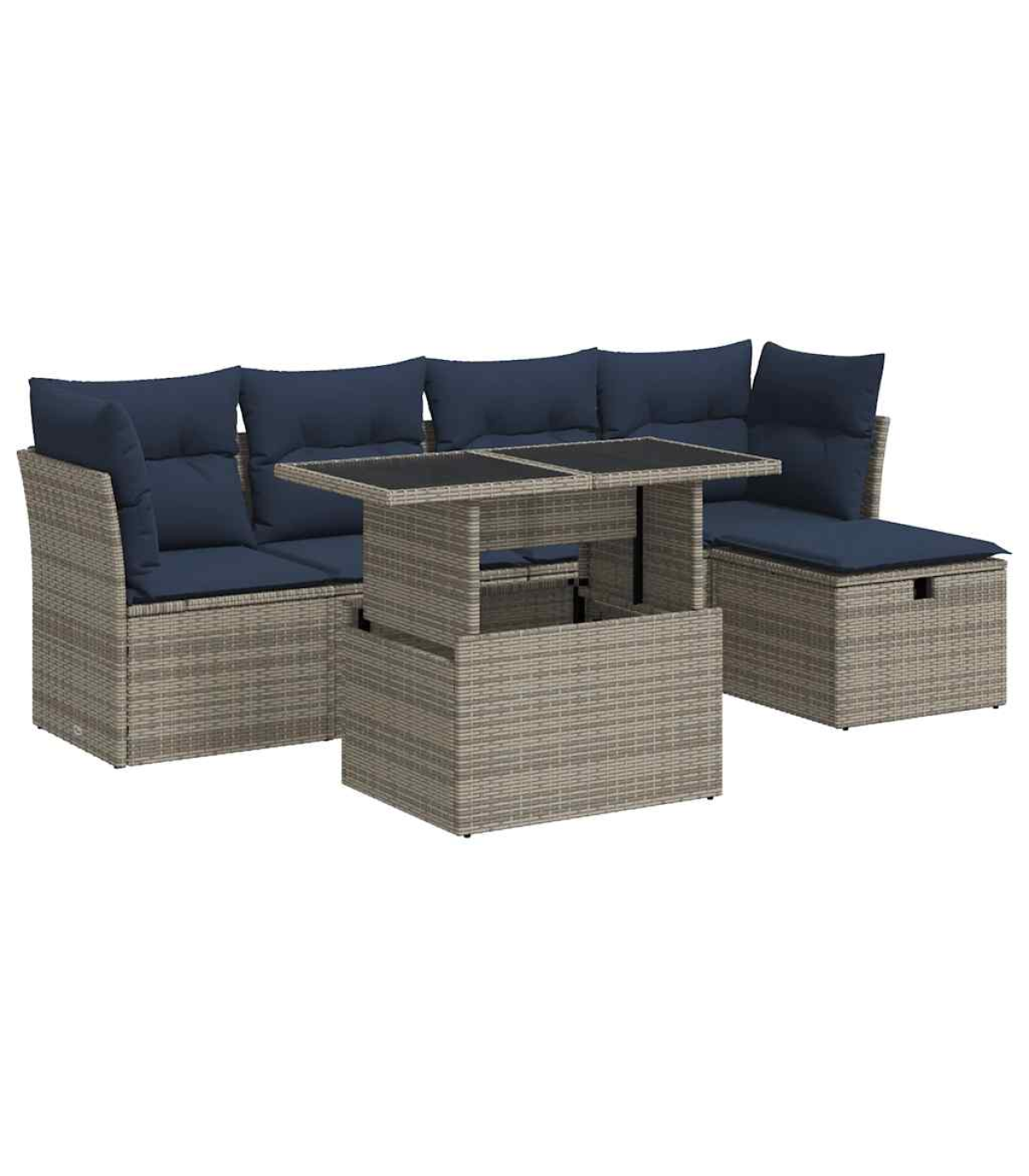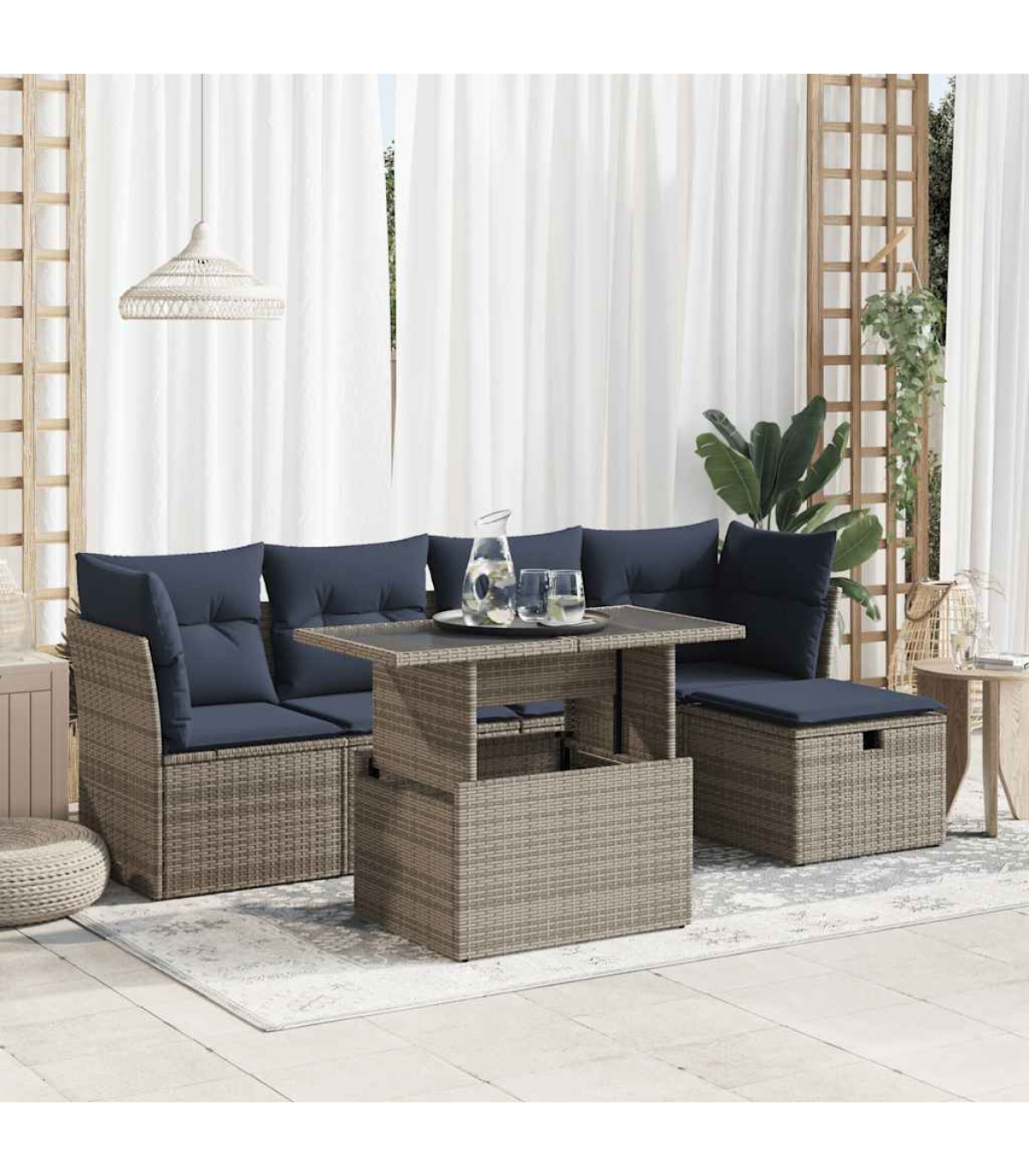 vidaXL 6 Piece Garden Sofa Set with Cushions Grey Poly Rattan Acacia