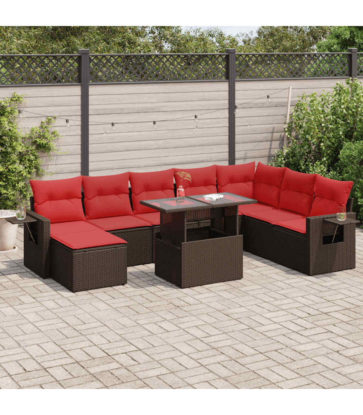 This garden sofa set is the perfect addition to your backyard, terrace, or patio, providing a comfortable and inviting space for chatting with family and friends or simply relaxing and enjoying the outdoors.Durable material: PE rattan, also known as poly rattan, is a strong, low-maintenance synthetic material that looks like natural rattan. It's lightweight, easy to clean, and commonly used for outdoor furniture due to its durability and weather-resistant properties.Storage function with water-resistant bag: Each garden seat features storage space under the seat, complete with a water-resistant bag for storing cushions, toys, and other items. The inner bags have a top cover and can be securely fastened to the seats with hook-and-loop fasteners for added stability.Convenient side table: This outdoor furniture features a foldable side table with a gas spring, providing a convenient spot to keep your essentials within easy reach.Removable and washable cover: These seat cushions feature removable covers for easy washing and maintenance.Modular design: This outdoor furniture set has a modular design, making it completely flexible and easy to move around, so you can create a customised outdoor furniture arrangement.Good to know:To make sure your outdoor furniture stays beautiful, we recommend protecting it with a waterproof cover.