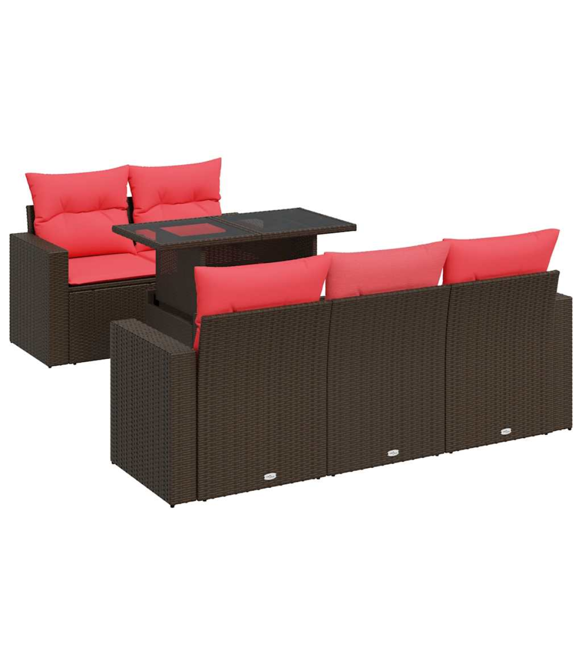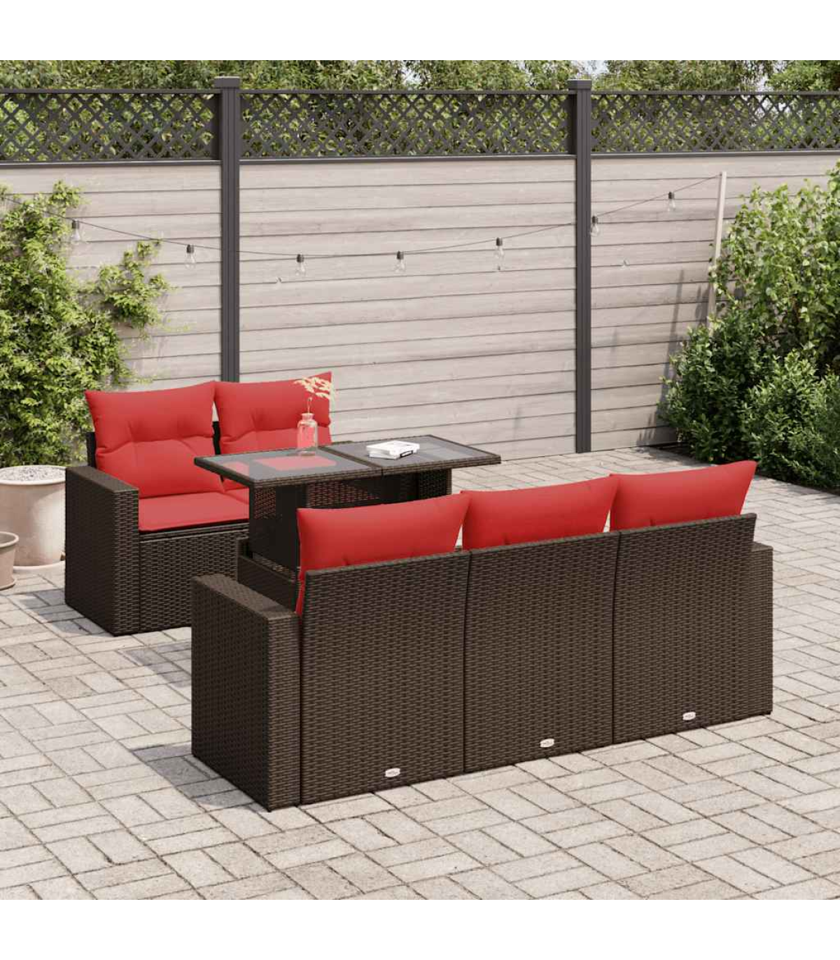 vidaXL 6 Piece Garden Sofa Set with Cushions Brown Poly Rattan Acacia