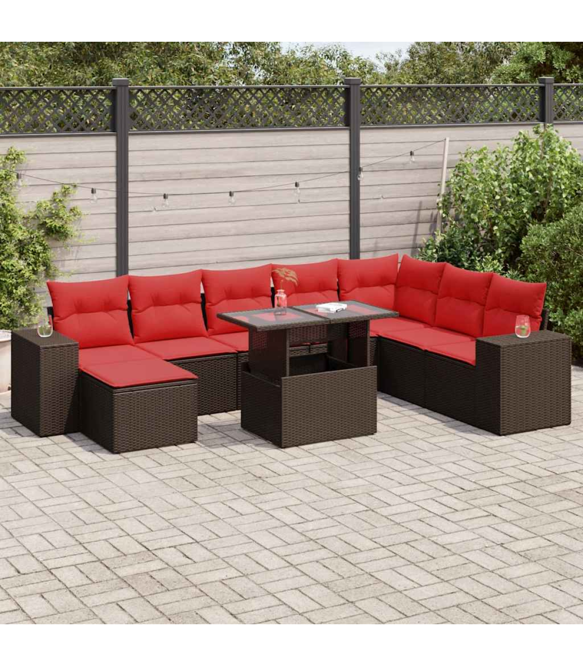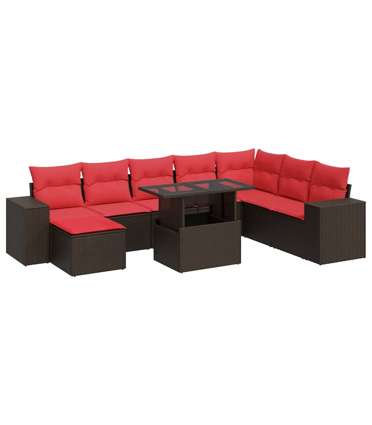 vidaXL 8 Piece Garden Sofa Set with Cushions Brown Poly Rattan Acacia