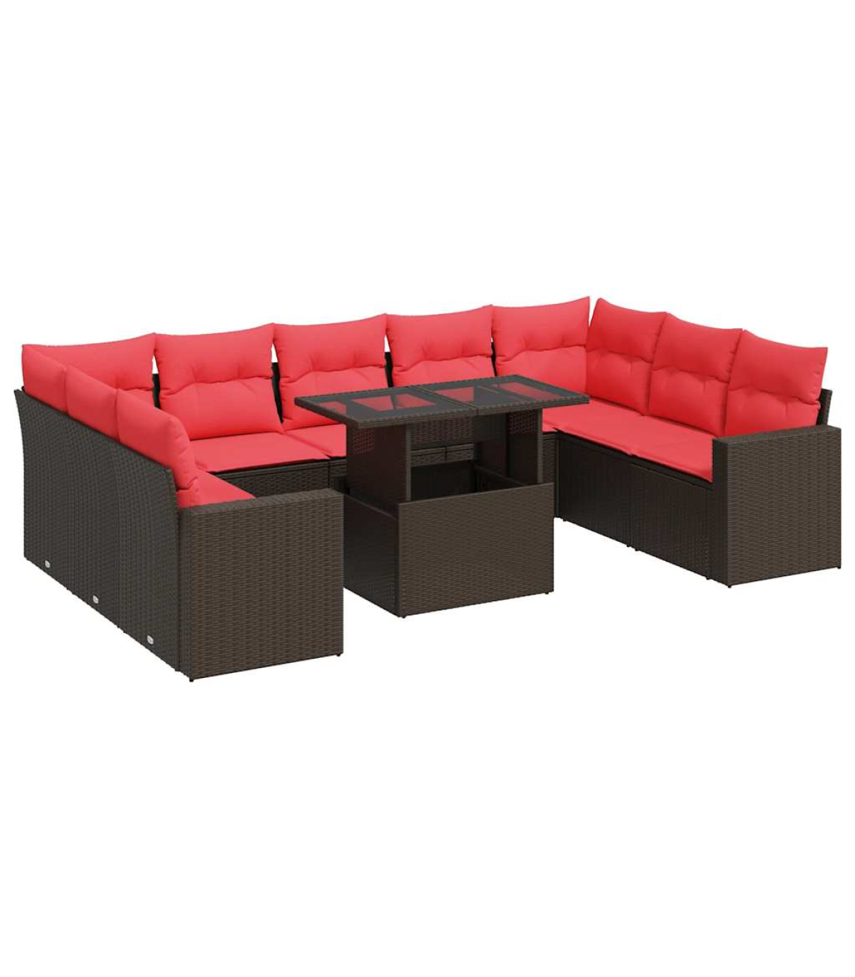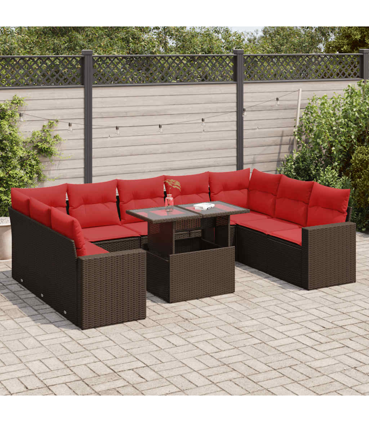 vidaXL 10 Piece Garden Sofa Set with Cushions Brown Poly Rattan Acacia