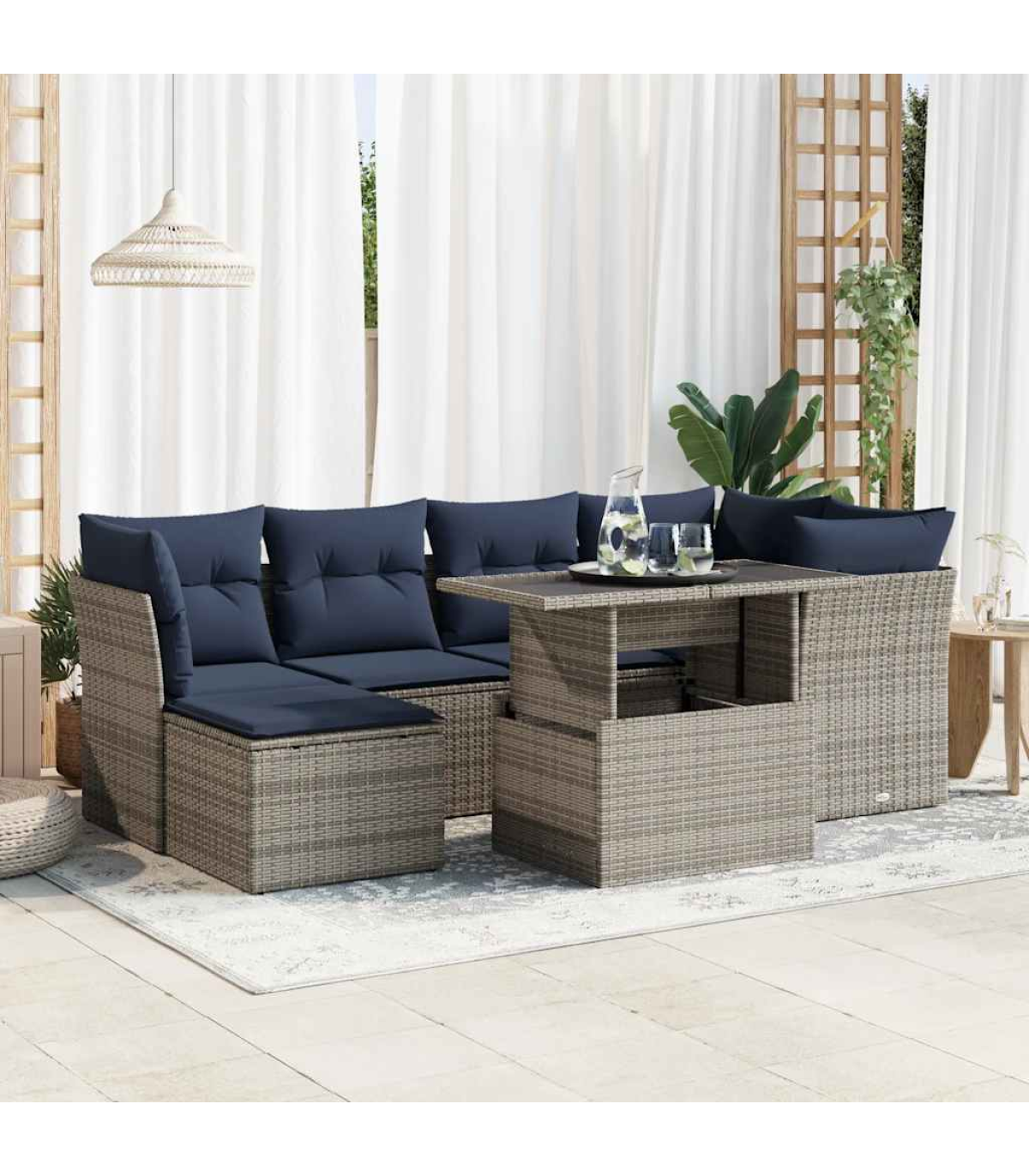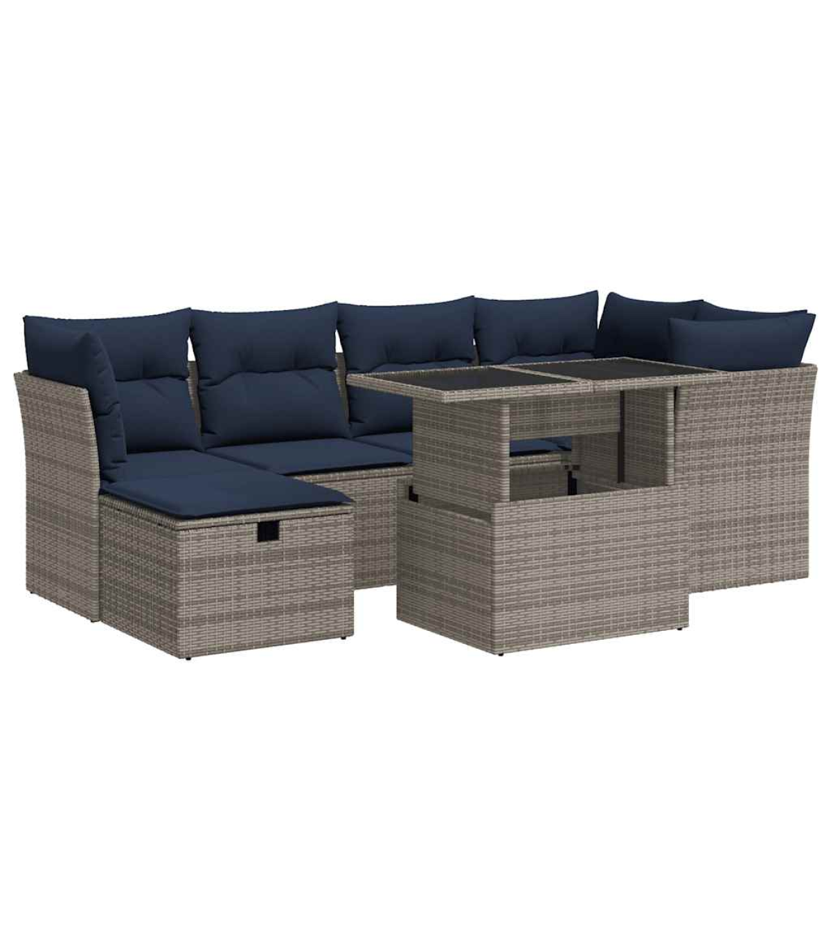 vidaXL 7 Piece Garden Sofa Set with Cushions Grey Poly Rattan Acacia