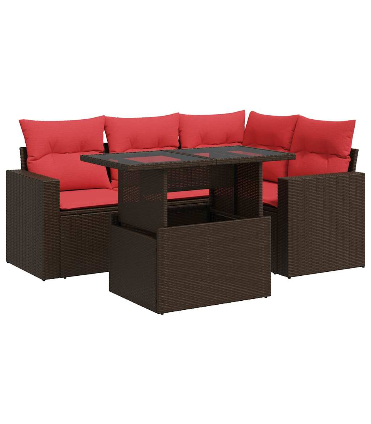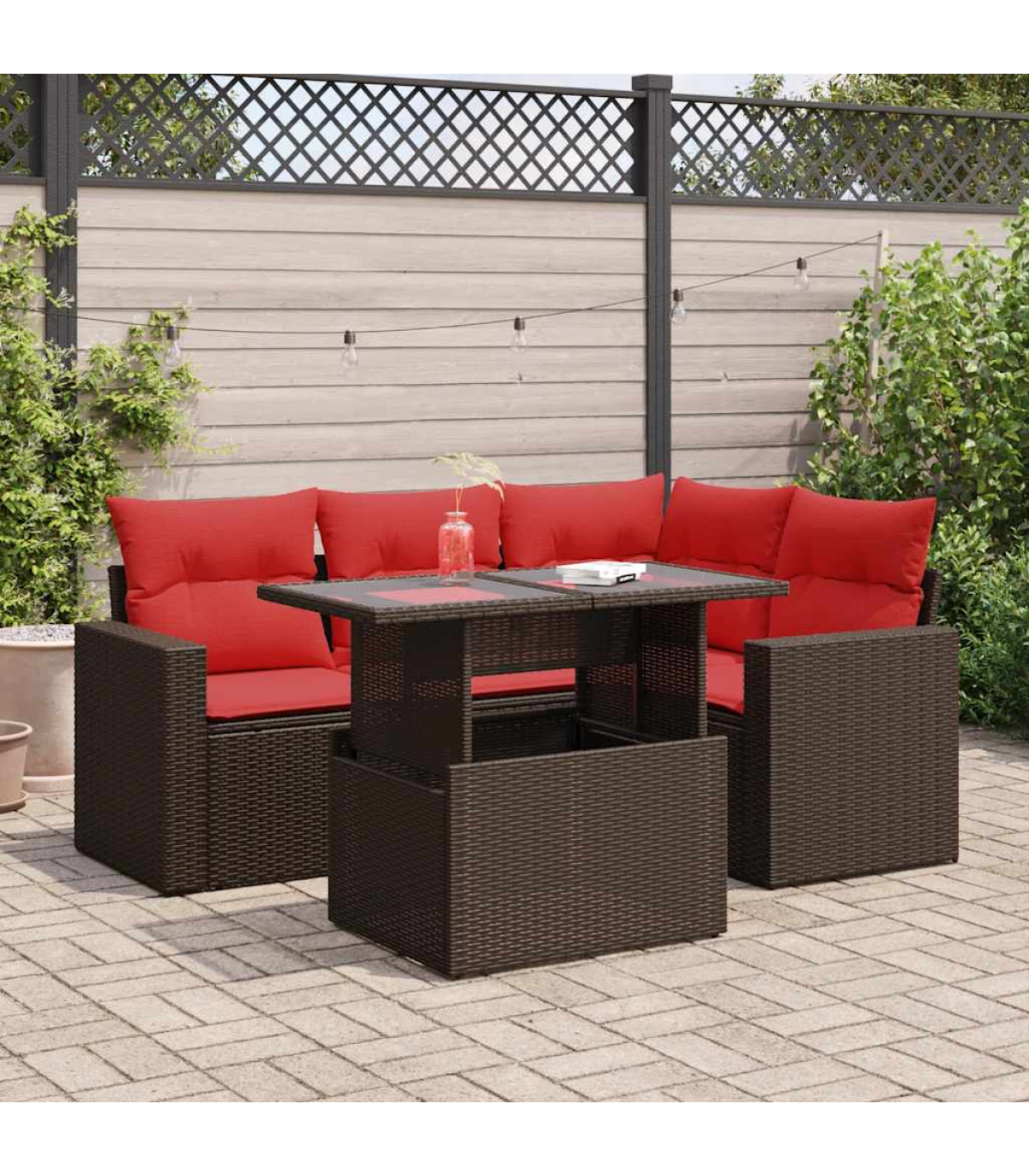 vidaXL 5 Piece Garden Sofa Set with Cushions Brown Poly Rattan Acacia