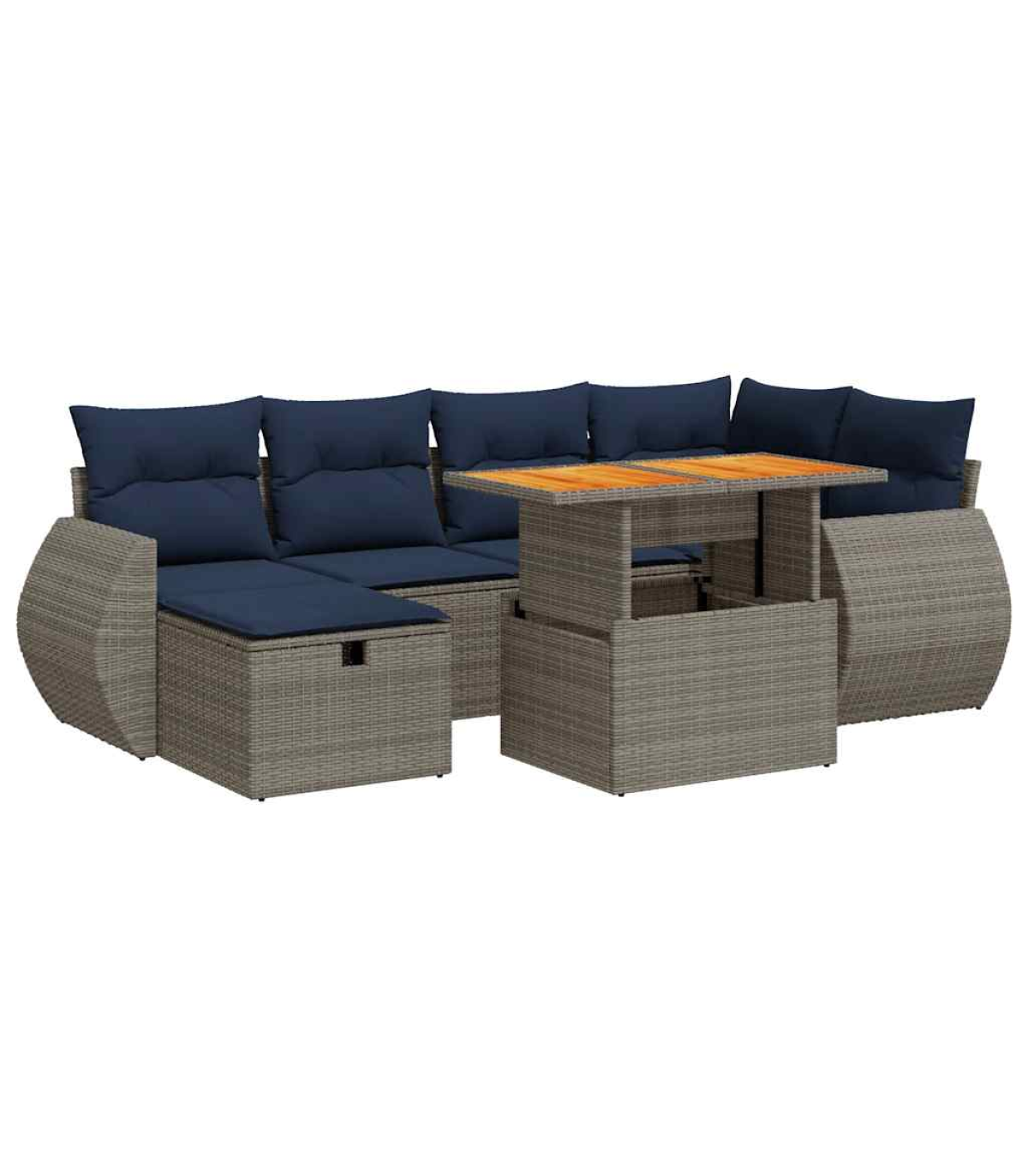 vidaXL 7 Piece Garden Sofa Set with Cushions Brown Poly Rattan Acacia