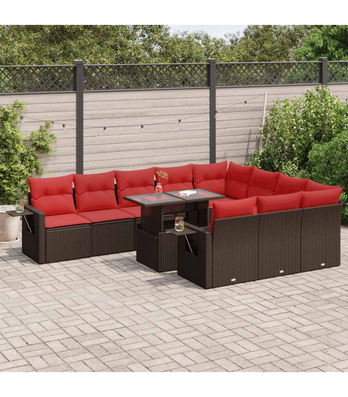 This garden sofa set is the perfect addition to your backyard, terrace, or patio, providing a comfortable and inviting space for chatting with family and friends or simply relaxing and enjoying the outdoors.Durable material: PE rattan, also known as poly rattan, is a strong, low-maintenance synthetic material that looks like natural rattan. It's lightweight, easy to clean, and commonly used for outdoor furniture due to its durability and weather-resistant properties.Storage function with water-resistant bag: Each garden seat features storage space under the seat, complete with a water-resistant bag for storing cushions, toys, and other items. The inner bags have a top cover and can be securely fastened to the seats with hook-and-loop fasteners for added stability.Convenient side table: This outdoor furniture features a foldable side table with a gas spring, providing a convenient spot to keep your essentials within easy reach.Removable and washable cover: These seat cushions feature removable covers for easy washing and maintenance.Modular design: This outdoor furniture set has a modular design, making it completely flexible and easy to move around, so you can create a customised outdoor furniture arrangement.Good to know:To make sure your outdoor furniture stays beautiful, we recommend protecting it with a waterproof cover.