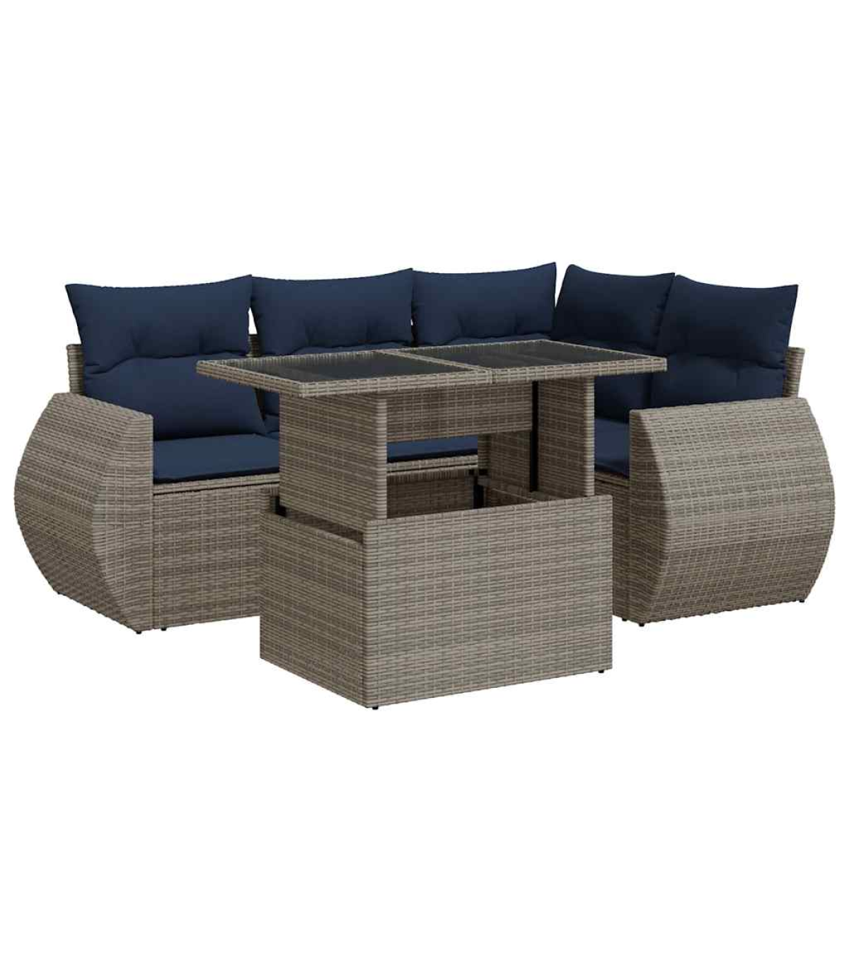 vidaXL 5 Piece Garden Sofa Set with Cushions Grey Poly Rattan Acacia