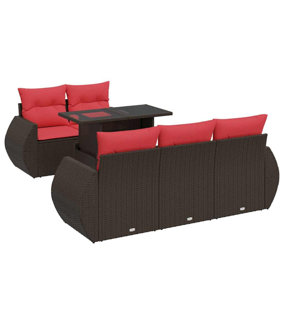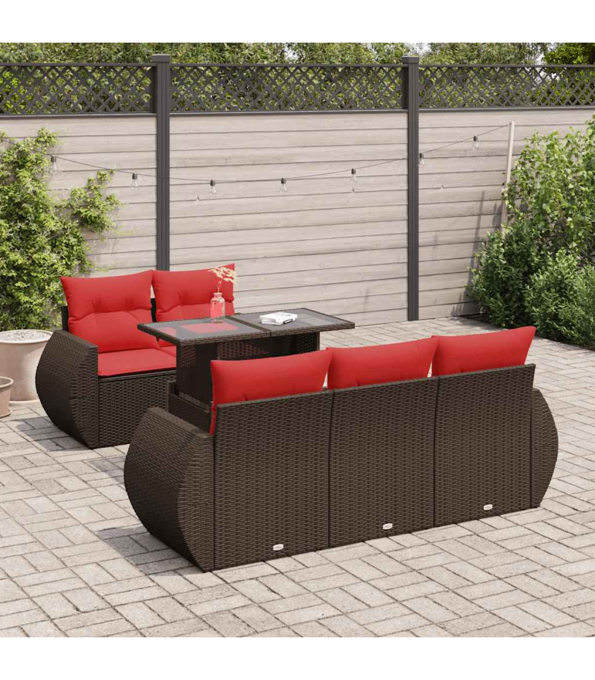 vidaXL 6 Piece Garden Sofa Set with Cushions Brown Poly Rattan Acacia