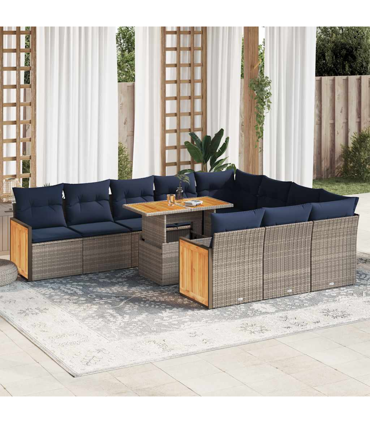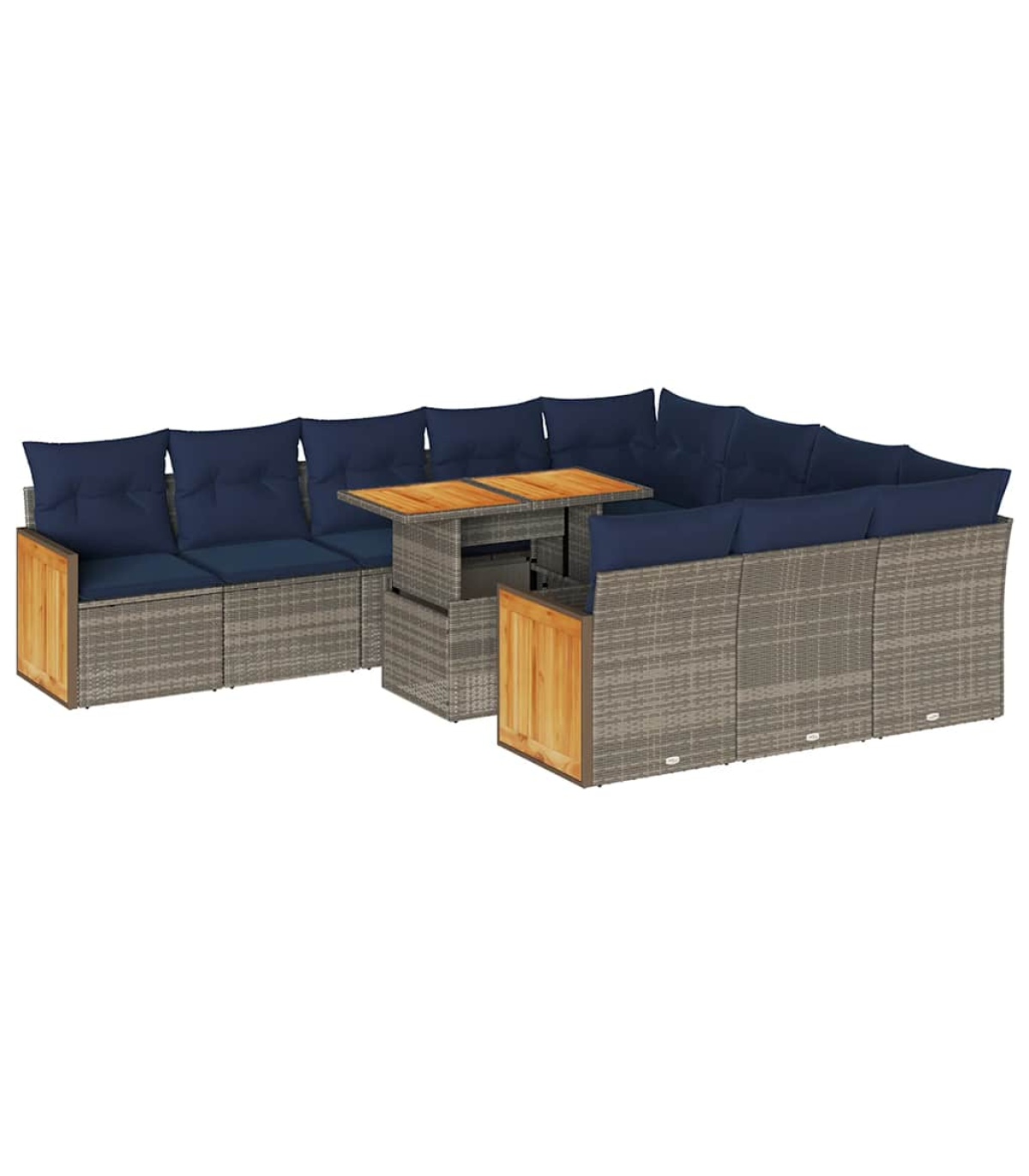 vidaXL 11 Piece Garden Sofa Set with Cushions Grey Poly Rattan Acacia