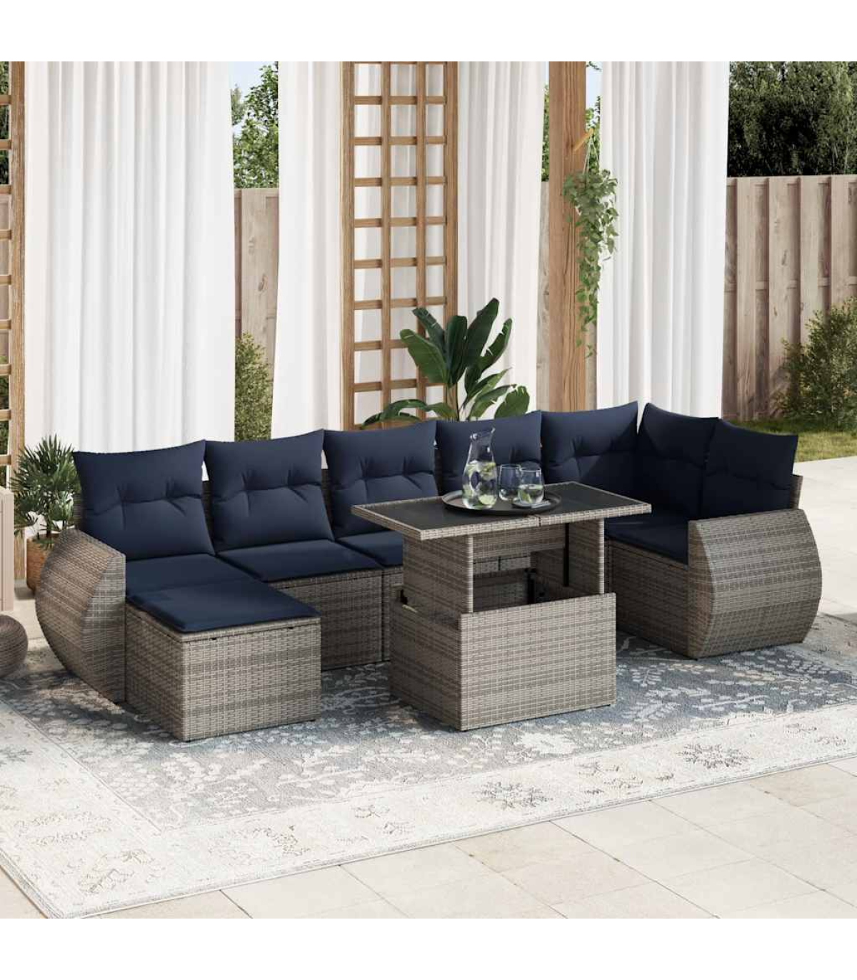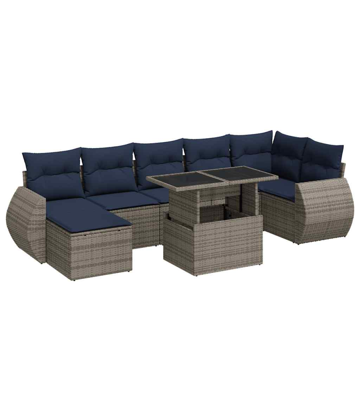 vidaXL 8 Piece Garden Sofa Set with Cushions Grey Poly Rattan Acacia