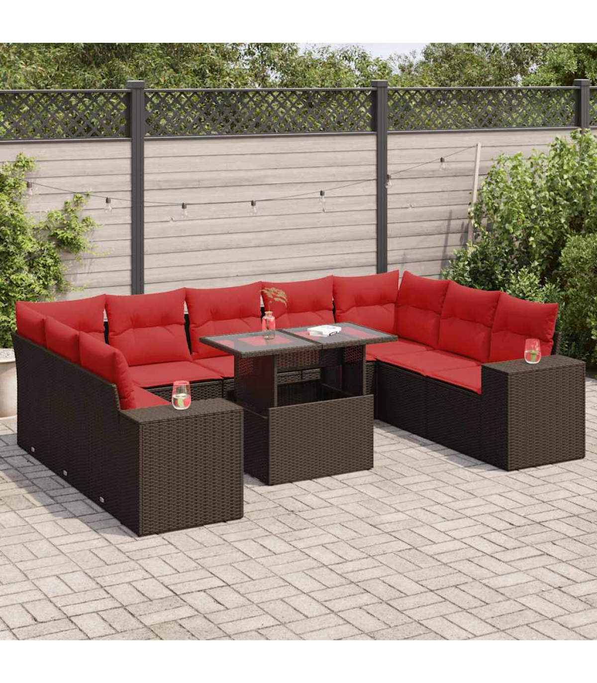 vidaXL 15 Piece Garden Sofa Set with Cushions Brown Poly Rattan Acacia