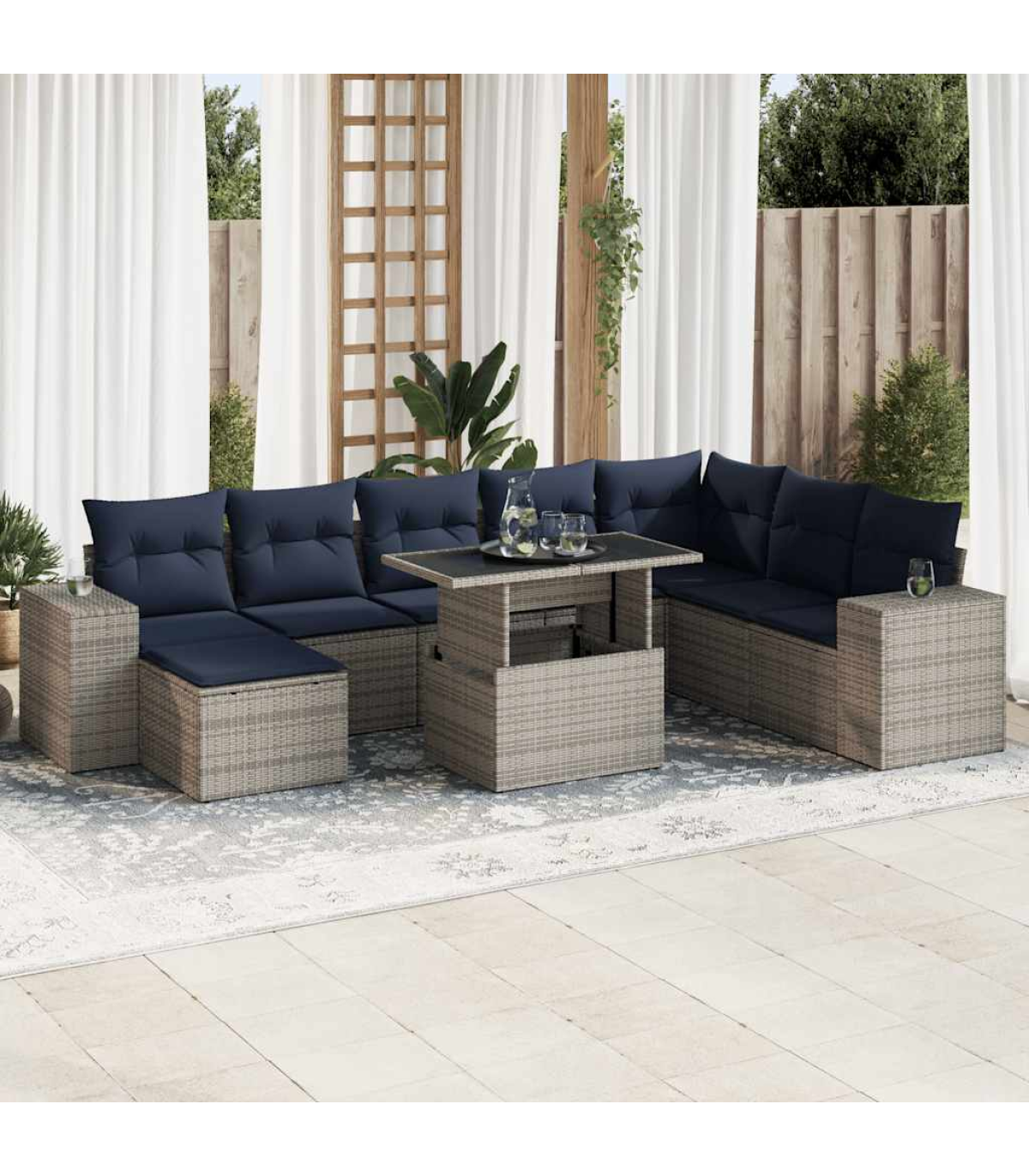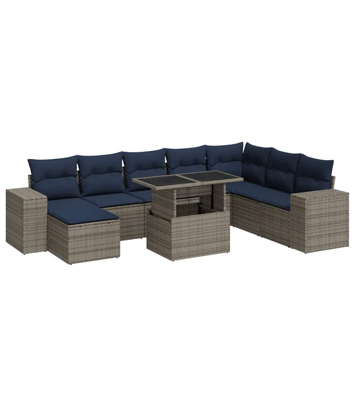 vidaXL 11 Piece Garden Sofa Set with Cushions Grey Poly Rattan Acacia