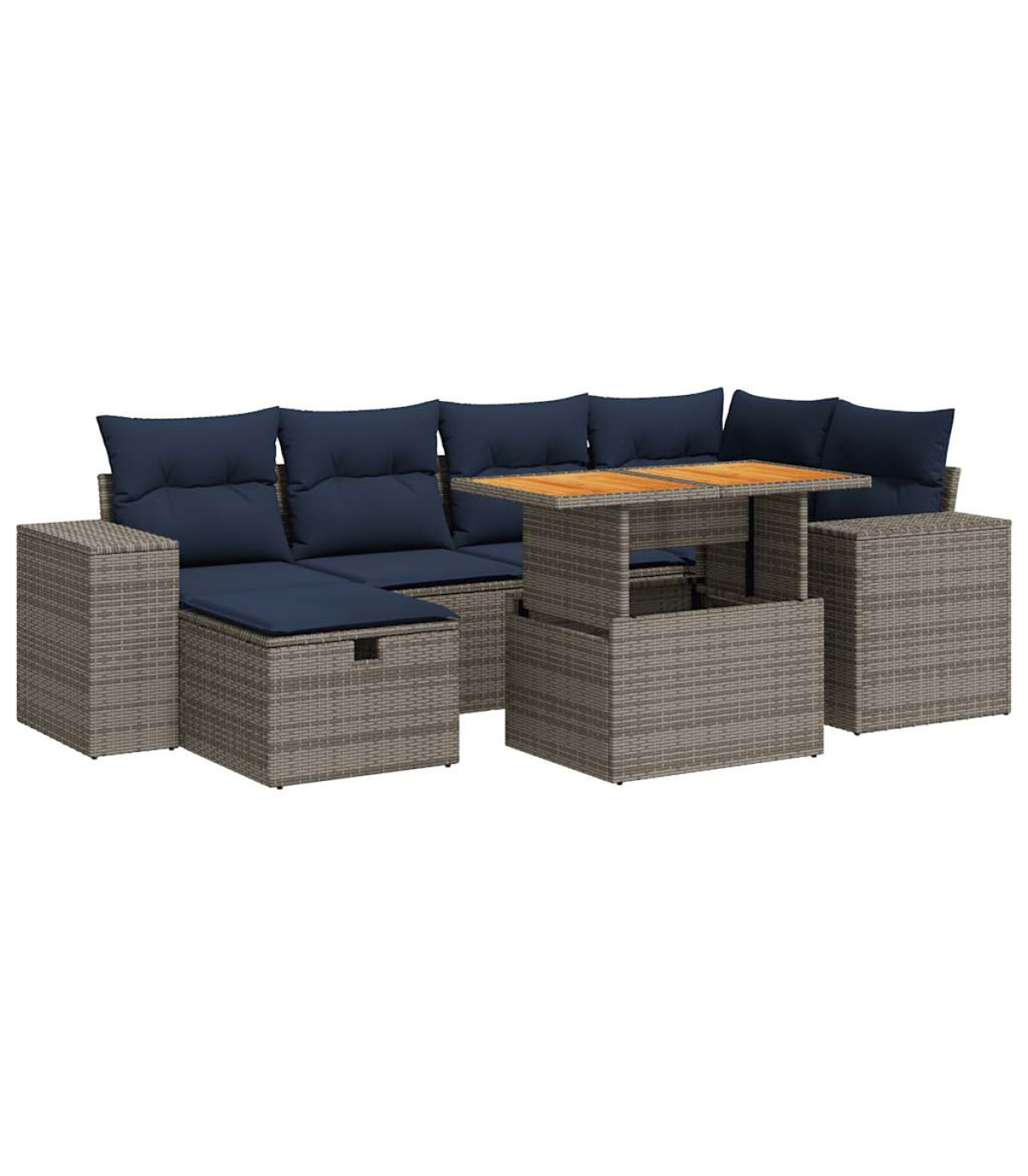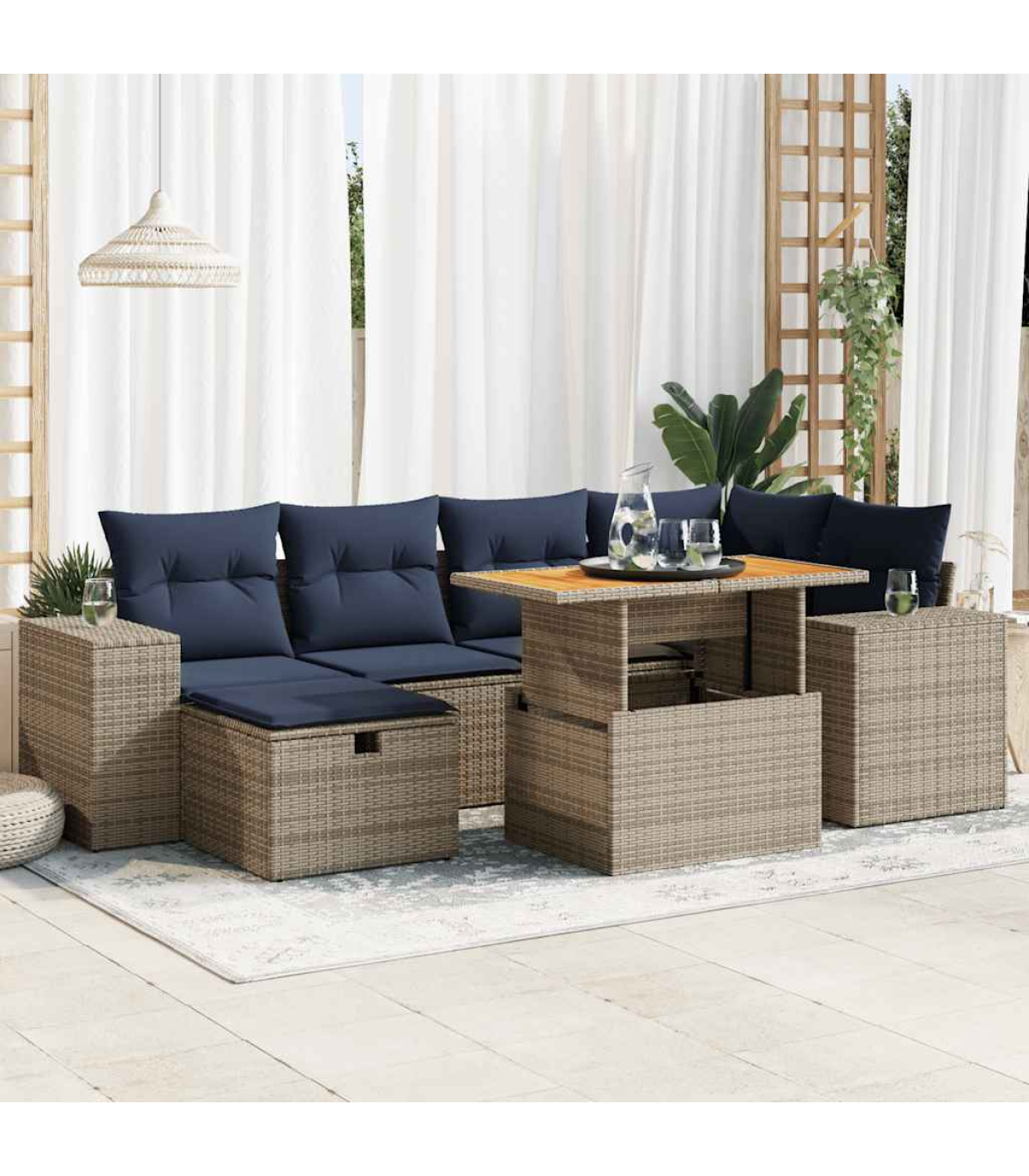 This garden sofa set is the perfect addition to your backyard, terrace, or patio, providing a comfortable and inviting space for chatting with family and friends or simply relaxing and enjoying the outdoors.Durable material: PE rattan, also known as poly rattan, is a strong, low-maintenance synthetic material that looks like natural rattan. It's lightweight, easy to clean, and commonly used for outdoor furniture due to its durability and weather-resistant properties.Storage function with water-resistant bag: Each garden seat features storage space under the seat, complete with a water-resistant bag for storing cushions, toys, and other items. The inner bags have a top cover and can be securely fastened to the seats with hook-and-loop fasteners for added stability.Removable and washable cover: These seat cushions feature removable covers for easy washing and maintenance.Modular design: This outdoor furniture set has a modular design, making it completely flexible and easy to move around, so you can create a customised outdoor furniture arrangement.Good to know:To make sure your outdoor furniture stays beautiful, we recommend protecting it with a waterproof cover.
