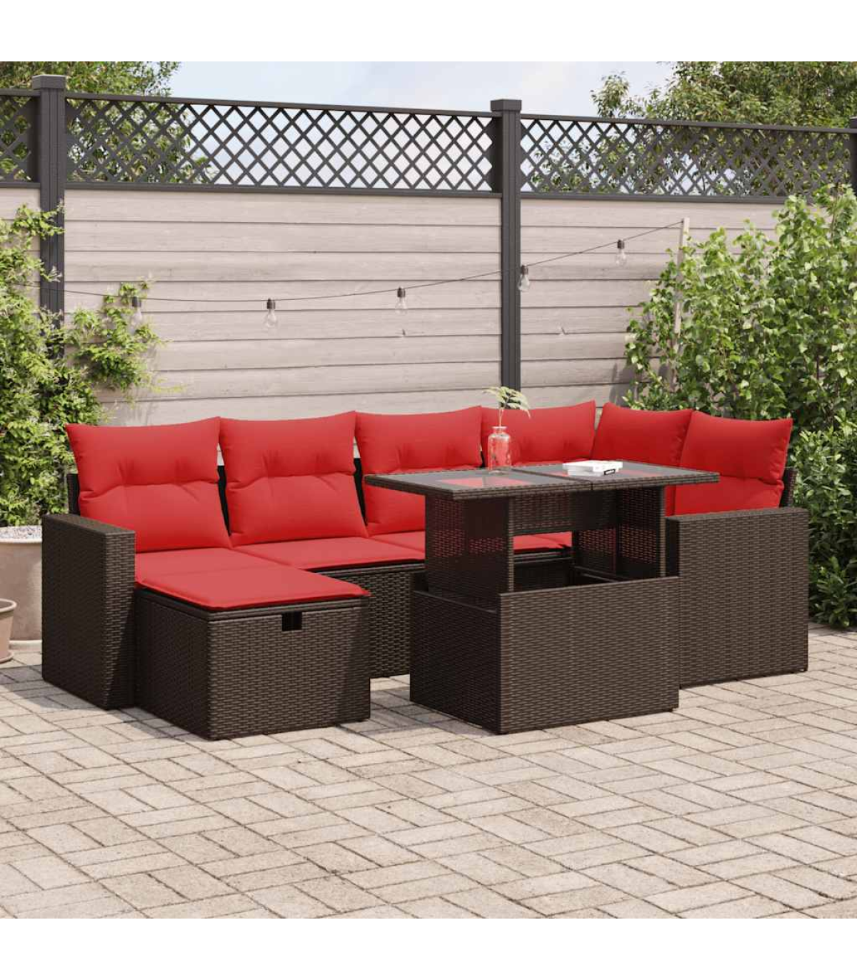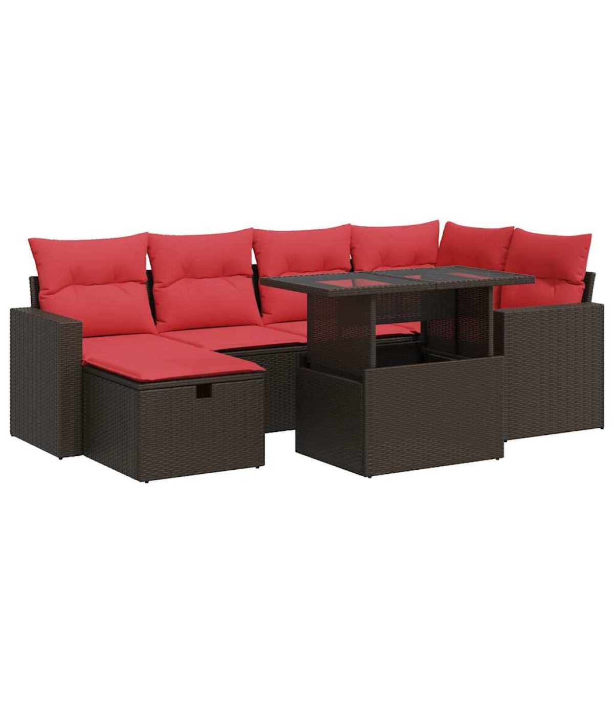 vidaXL 7 Piece Garden Sofa Set with Cushions Black Poly Rattan Acacia