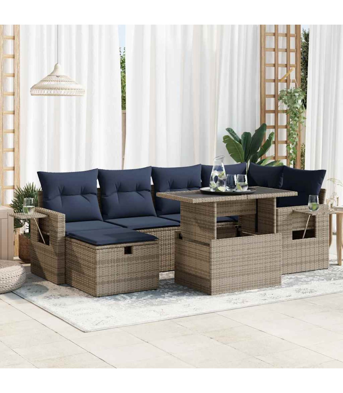 This garden sofa set is the perfect addition to your backyard, terrace, or patio, providing a comfortable and inviting space for chatting with family and friends or simply relaxing and enjoying the outdoors.Durable material: PE rattan, also known as poly rattan, is a strong, low-maintenance synthetic material that looks like natural rattan. It's lightweight, easy to clean, and commonly used for outdoor furniture due to its durability and weather-resistant properties.Storage function with water-resistant bag: Each garden seat features storage space under the seat, complete with a water-resistant bag for storing cushions, toys, and other items. The inner bags have a top cover and can be securely fastened to the seats with hook-and-loop fasteners for added stability.Convenient side table: This outdoor furniture features a foldable side table with a gas spring, providing a convenient spot to keep your essentials within easy reach.Removable and washable cover: These seat cushions feature removable covers for easy washing and maintenance.Modular design: This outdoor furniture set has a modular design, making it completely flexible and easy to move around, so you can create a customised outdoor furniture arrangement.Good to know:To make sure your outdoor furniture stays beautiful, we recommend protecting it with a waterproof cover.
