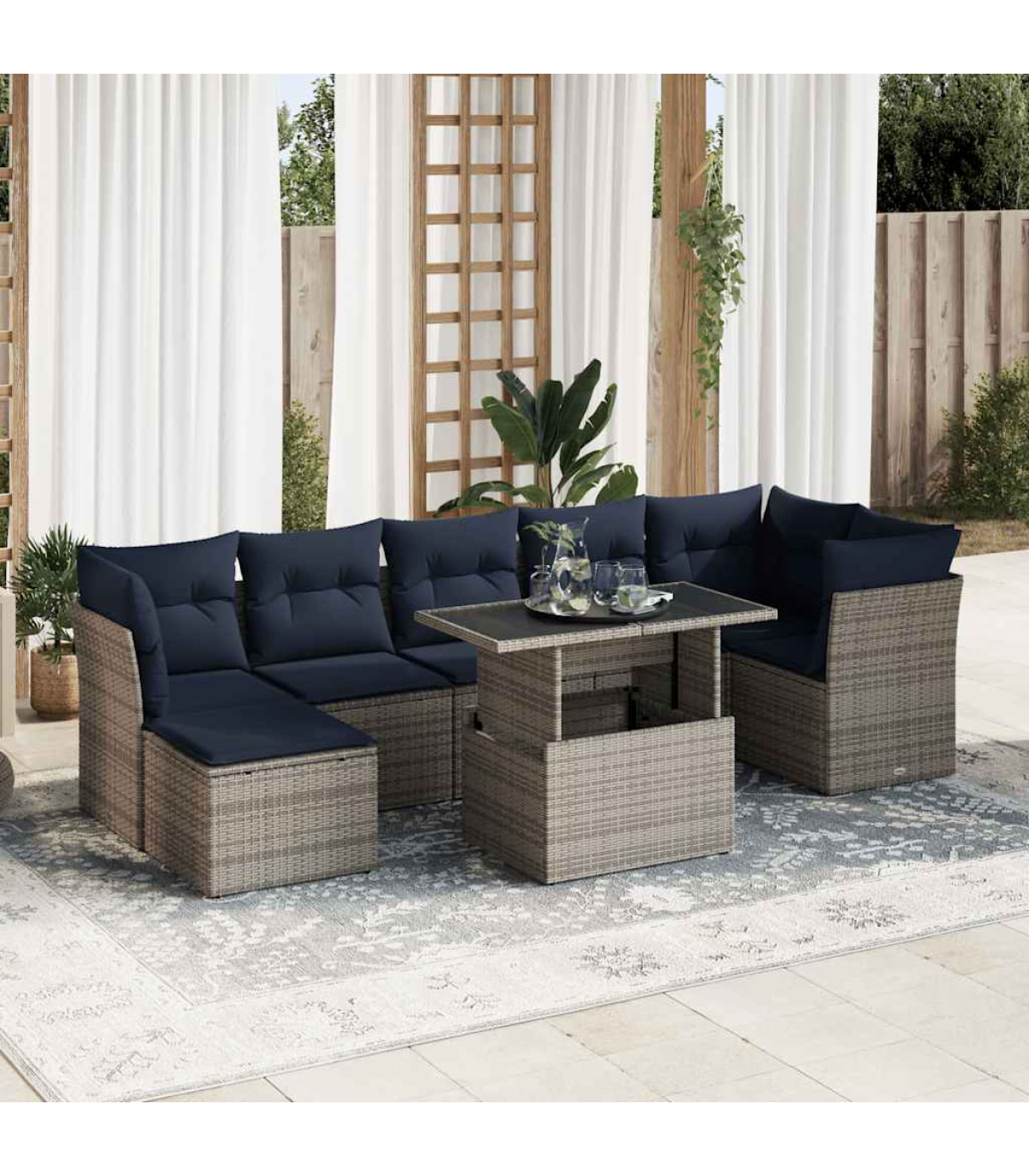 vidaXL 7 Piece Garden Sofa Set with Cushions Grey Poly Rattan Acacia