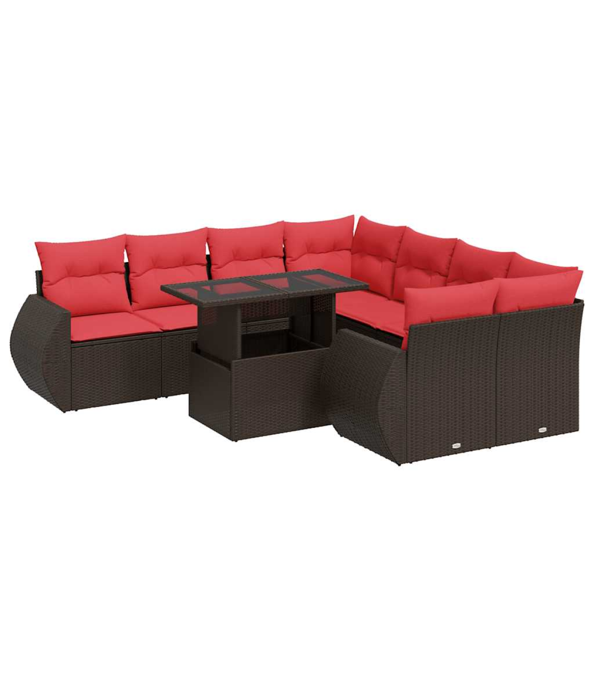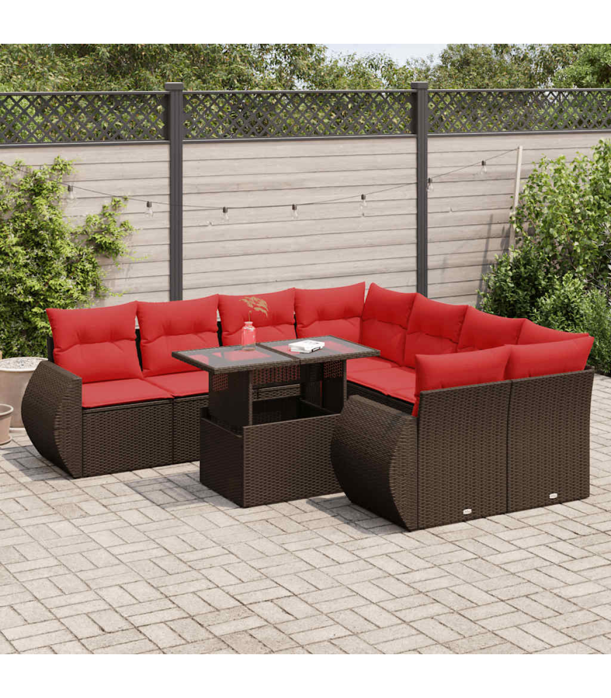 vidaXL 9 Piece Garden Sofa Set with Cushions Brown Poly Rattan Acacia