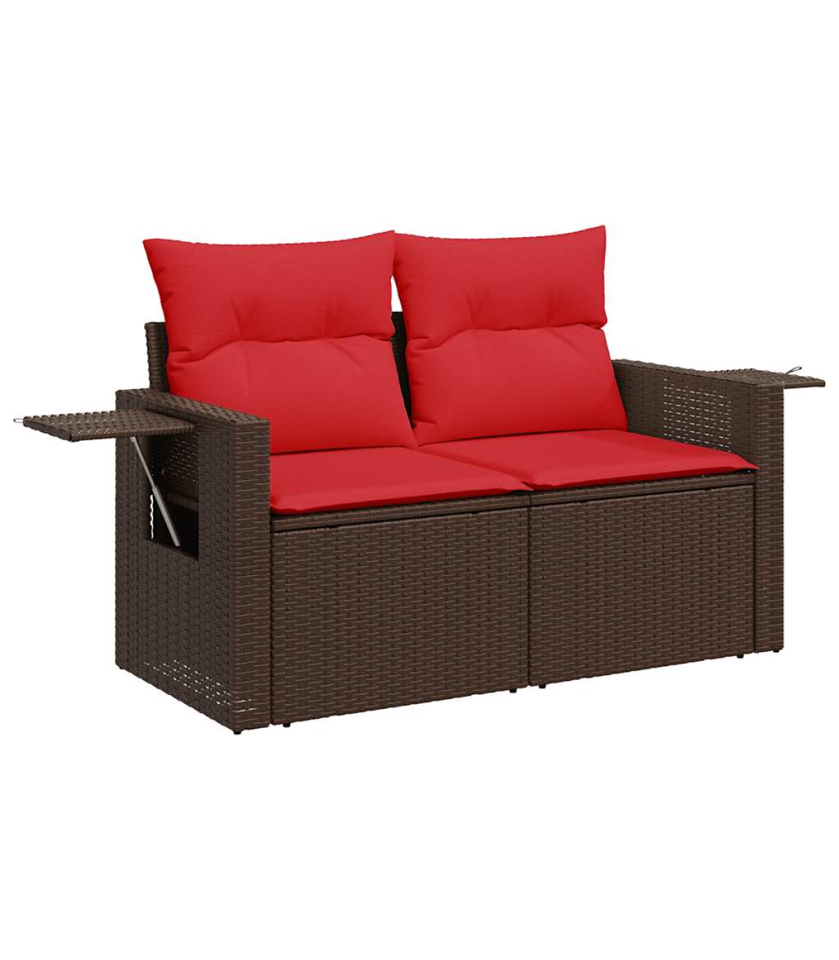 This garden sofa set is the perfect addition to your backyard, terrace, or patio, providing a comfortable and inviting space for chatting with family and friends or simply relaxing and enjoying the outdoors.Durable material: PE rattan, also known as poly rattan, is a strong, low-maintenance synthetic material that looks like natural rattan. It's lightweight, easy to clean, and commonly used for outdoor furniture due to its durability and weather-resistant properties.Storage function with water-resistant bag: Each garden seat features storage space under the seat, complete with a water-resistant bag for storing cushions, toys, and other items. The inner bags have a top cover and can be securely fastened to the seats with hook-and-loop fasteners for added stability.Convenient side table: This outdoor furniture features a foldable side table with a gas spring, providing a convenient spot to keep your essentials within easy reach.Removable and washable cover: These seat cushions feature removable covers for easy washing and maintenance.Modular design: This outdoor furniture set has a modular design, making it completely flexible and easy to move around, so you can create a customised outdoor furniture arrangement.Good to know:To make sure your outdoor furniture stays beautiful, we recommend protecting it with a waterproof cover.