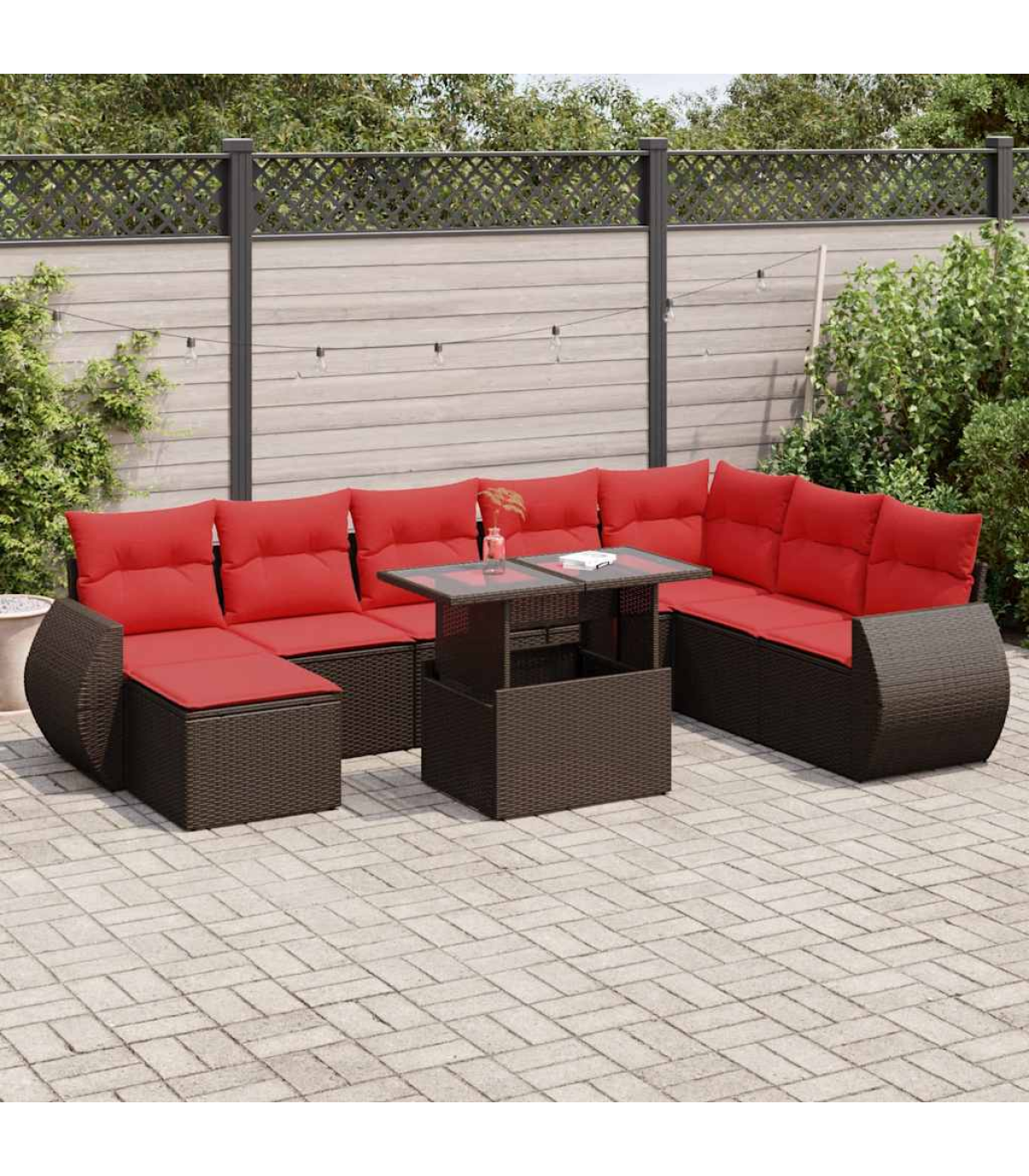 vidaXL 11 Piece Garden Sofa Set with Cushions Brown Poly Rattan Acacia