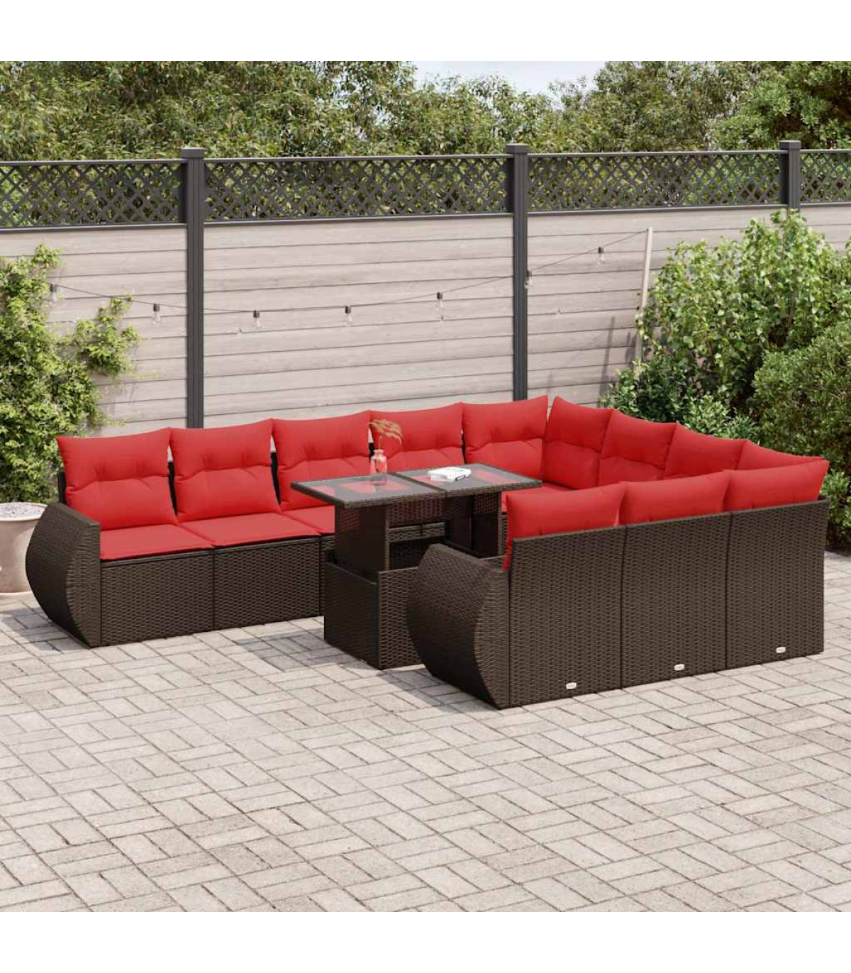 vidaXL 11 Piece Garden Sofa Set with Cushions Brown Poly Rattan Acacia