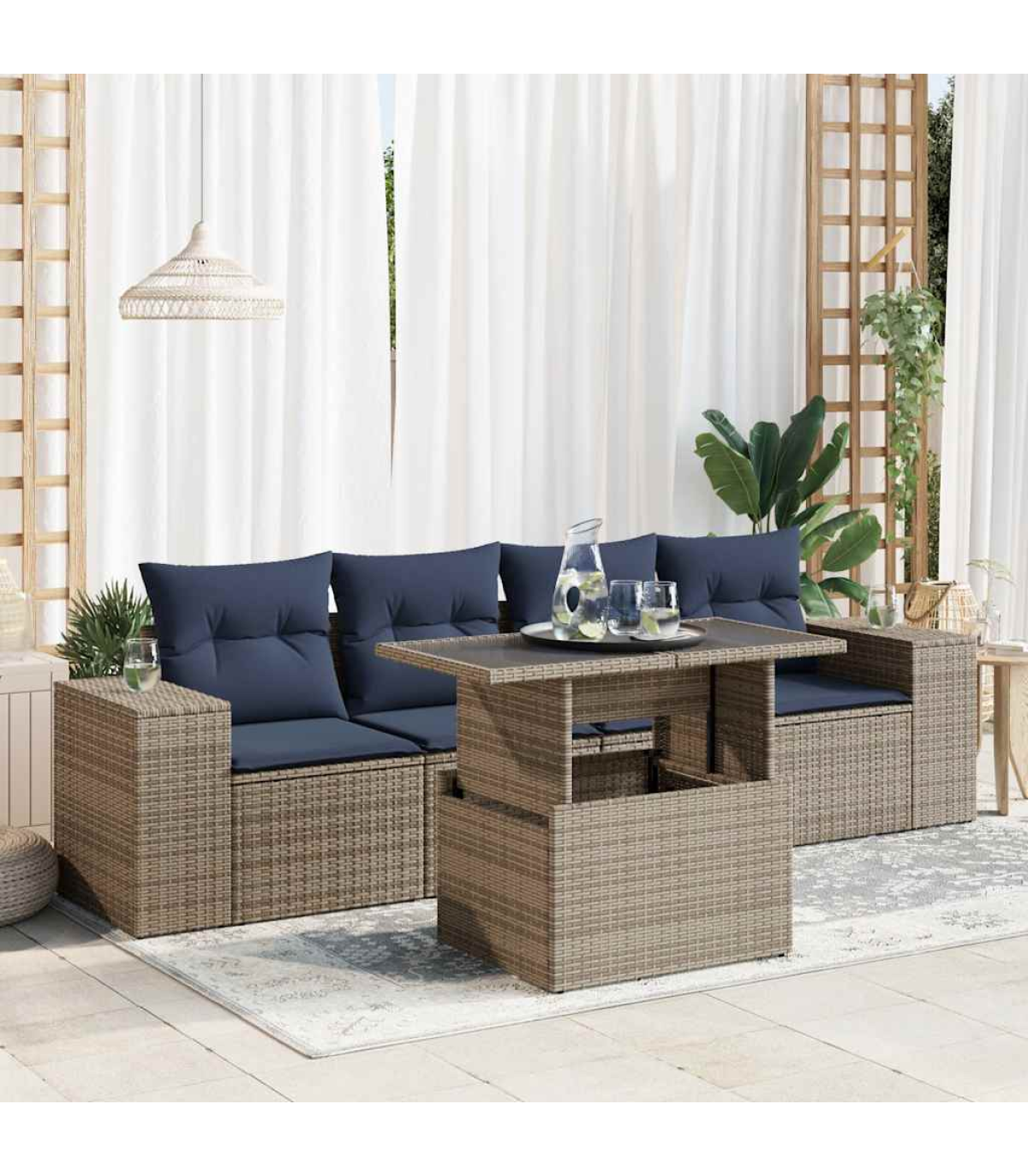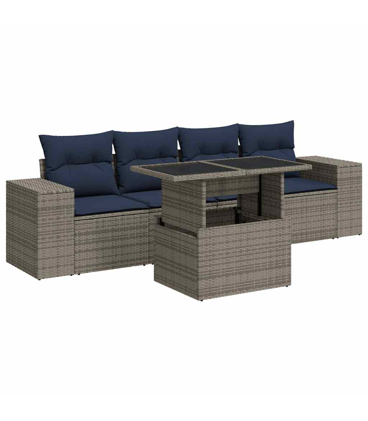 vidaXL 5 Piece Garden Sofa Set with Cushions Grey Poly Rattan Acacia