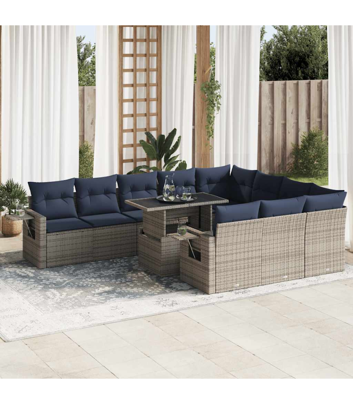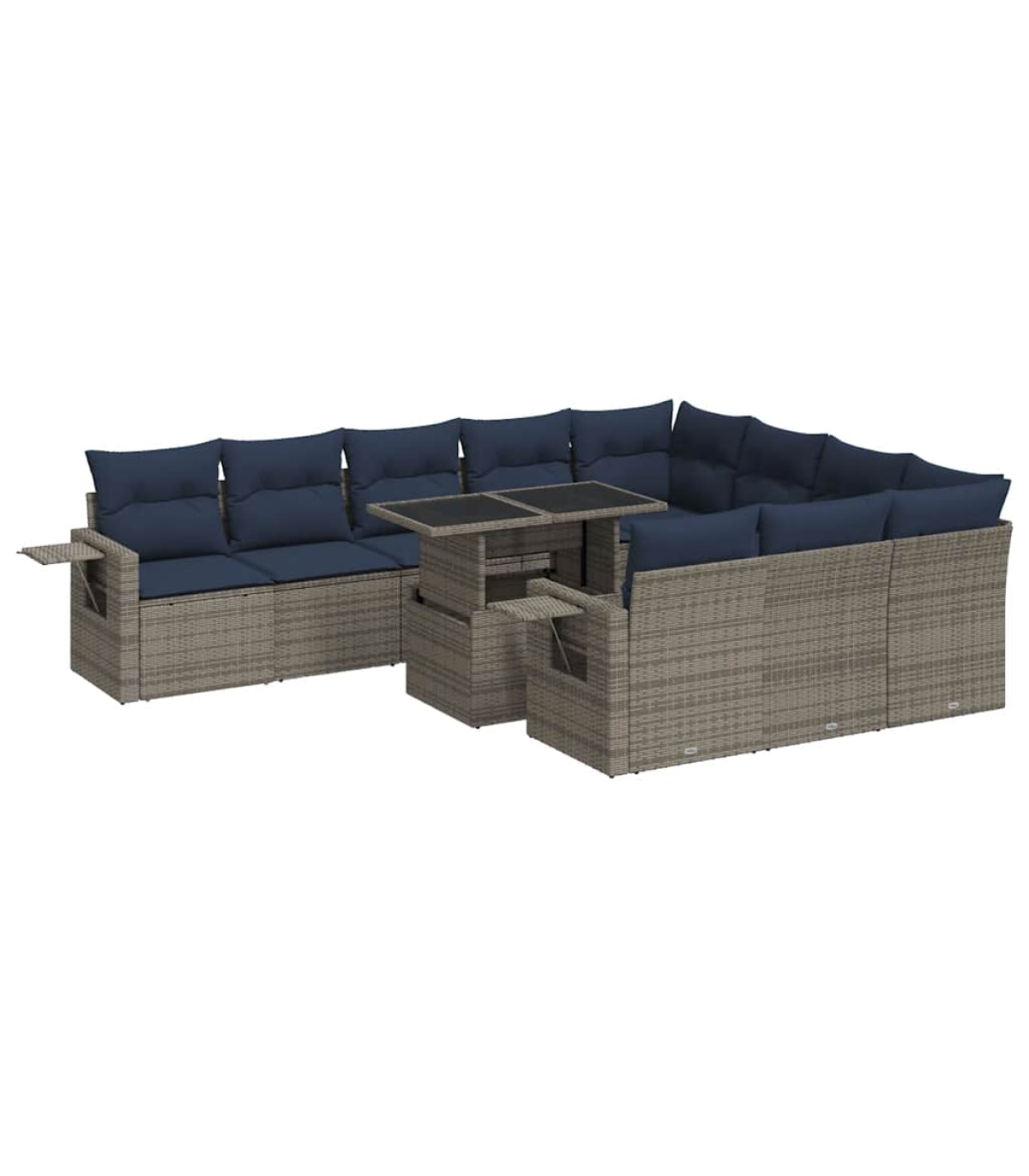 vidaXL 11 Piece Garden Sofa Set with Cushions Grey Poly Rattan Acacia