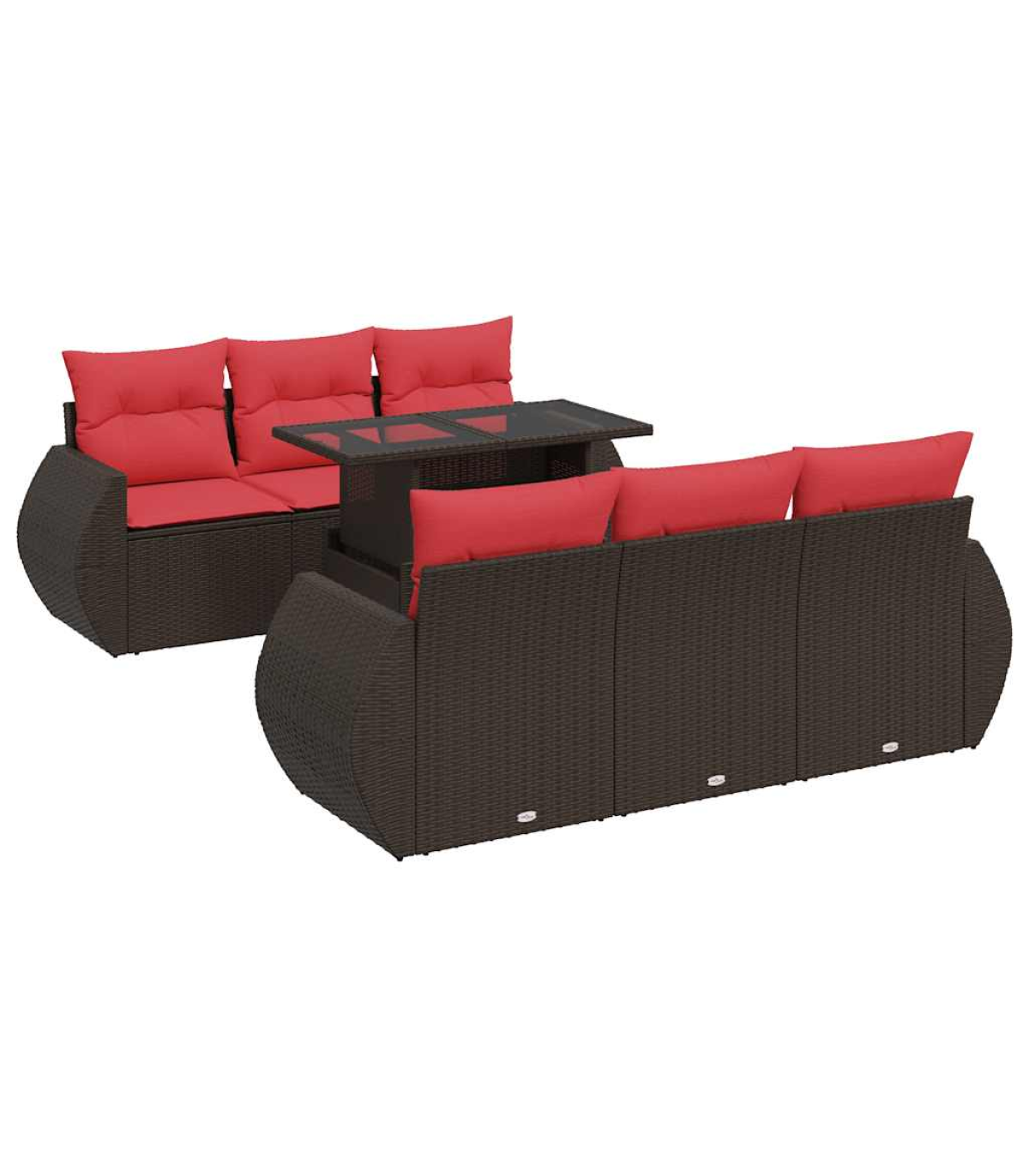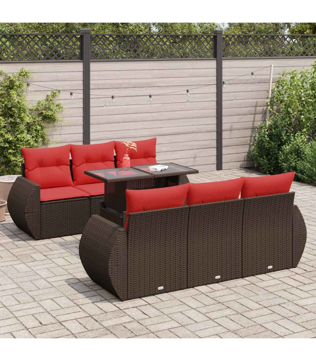 vidaXL 7 Piece Garden Sofa Set with Cushions Brown Poly Rattan Acacia