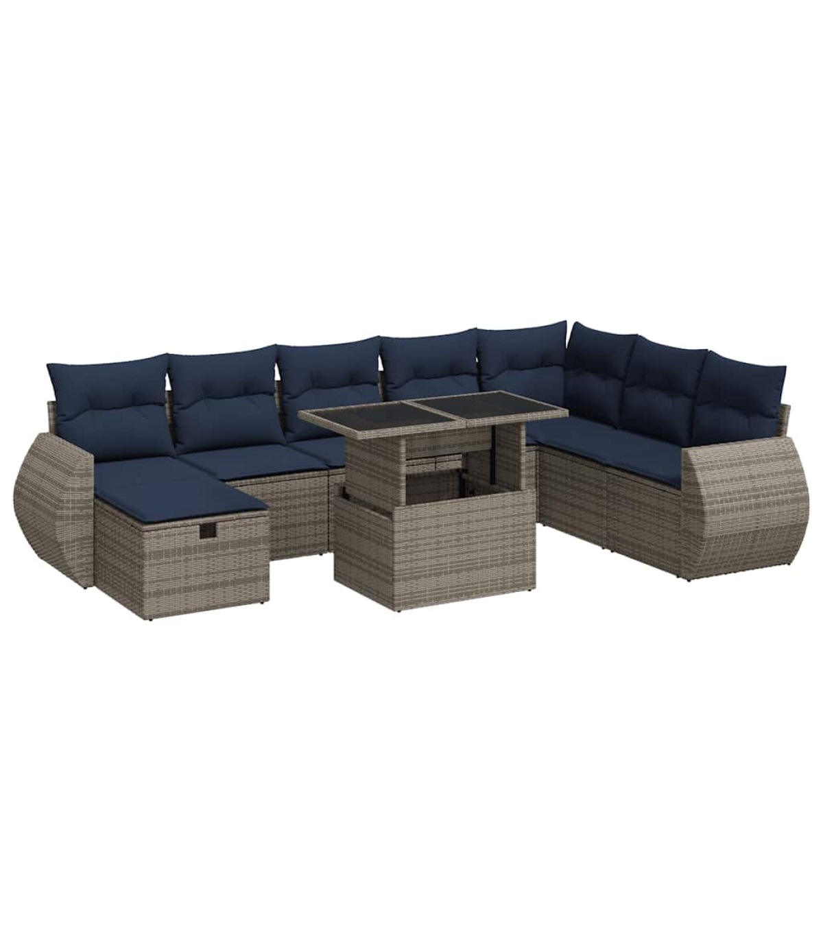 vidaXL 9 Piece Garden Sofa Set with Cushions Brown Poly Rattan Acacia