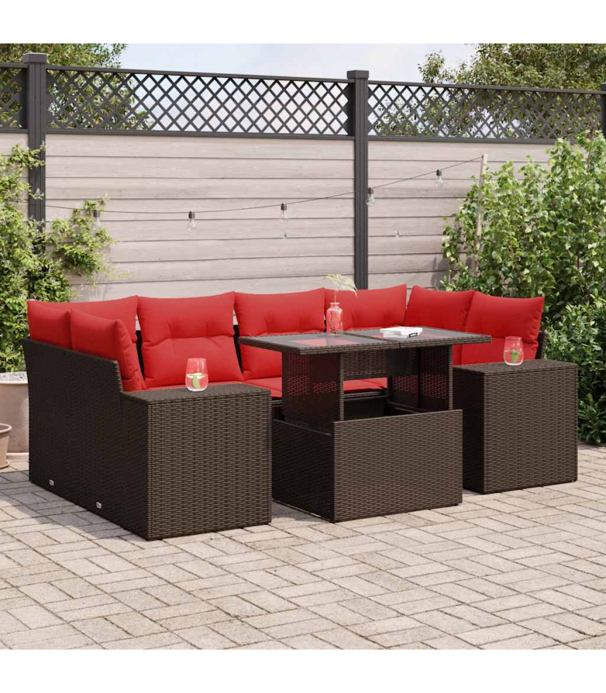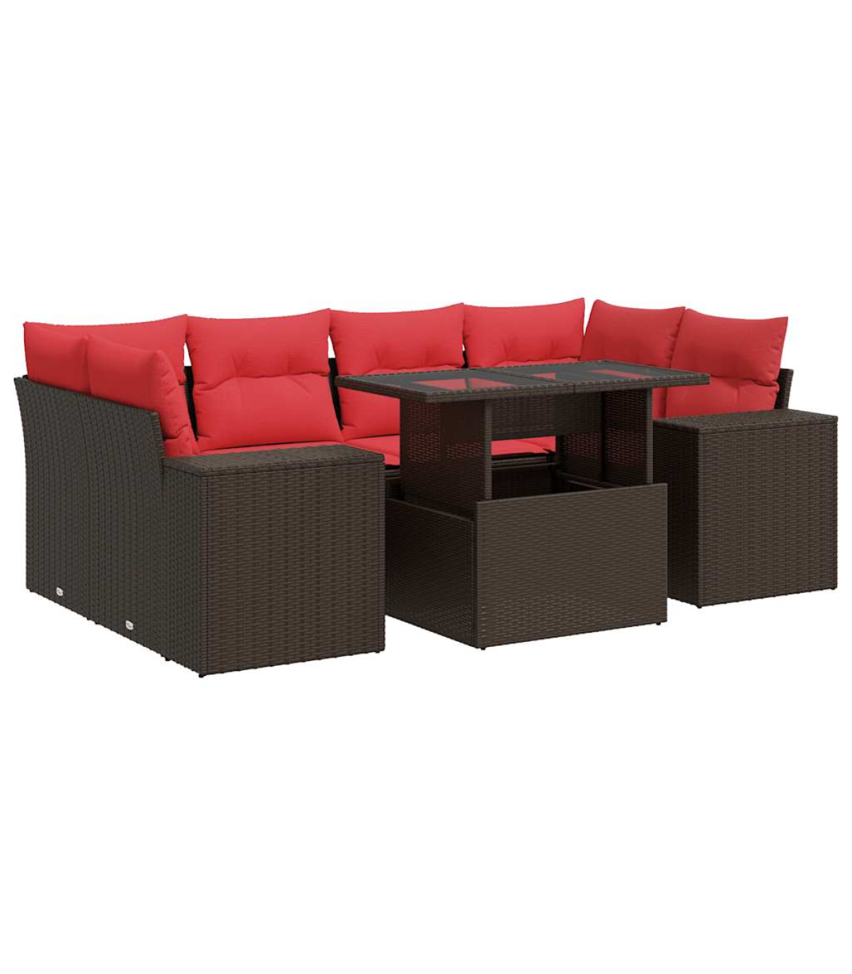 vidaXL 7 Piece Garden Sofa Set with Cushions Brown Poly Rattan Acacia