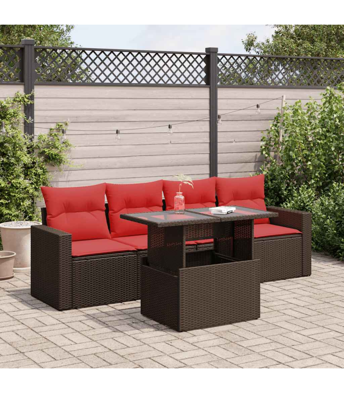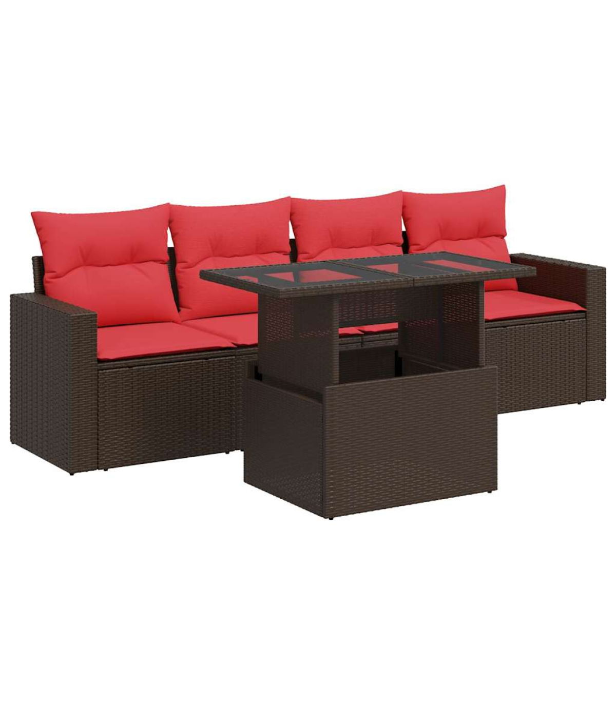 vidaXL 5 Piece Garden Sofa Set with Cushions Brown Poly Rattan Acacia