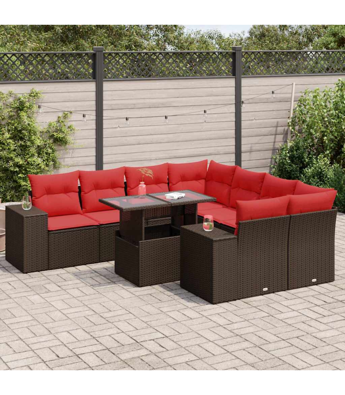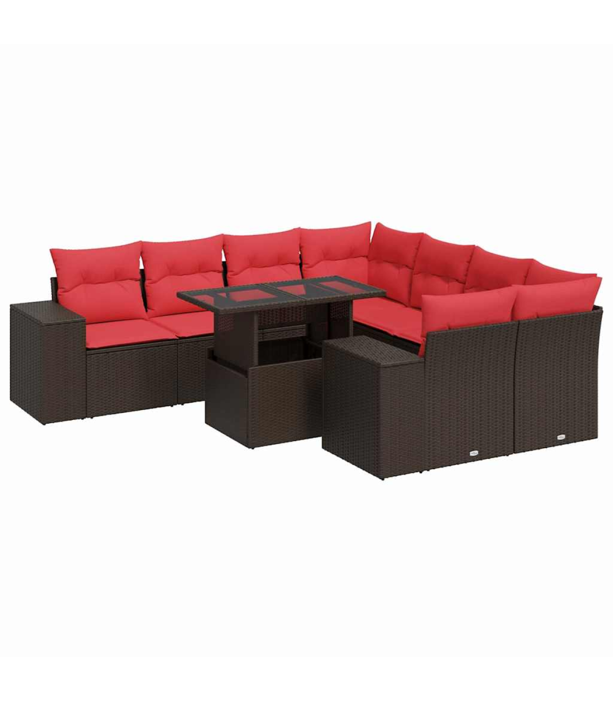 vidaXL 9 Piece Garden Sofa Set with Cushions Brown Poly Rattan Acacia