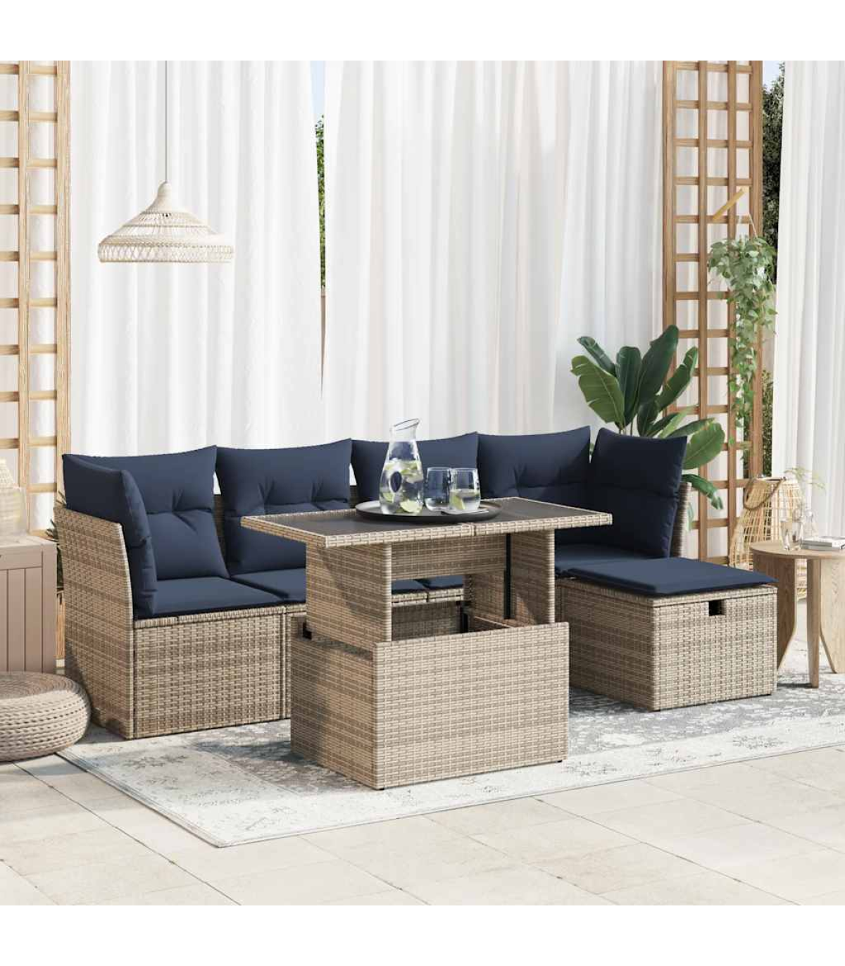 vidaXL 6 Piece Garden Sofa Set with Cushions Grey Poly Rattan Acacia