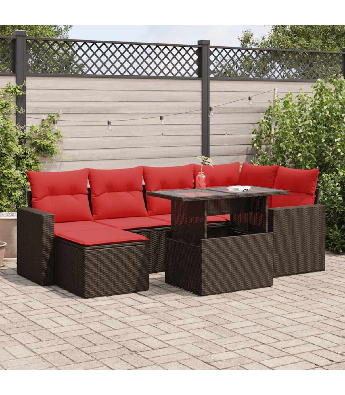 This garden sofa set is the perfect addition to your backyard, terrace, or patio, providing a comfortable and inviting space for chatting with family and friends or simply relaxing and enjoying the outdoors.Durable material: PE rattan, also known as poly rattan, is a strong, low-maintenance synthetic material that looks like natural rattan. It's lightweight, easy to clean, and commonly used for outdoor furniture due to its durability and weather-resistant properties.Storage function with water-resistant bag: Each garden seat features storage space under the seat, complete with a water-resistant bag for storing cushions, toys, and other items. The inner bags have a top cover and can be securely fastened to the seats with hook-and-loop fasteners for added stability.Removable and washable cover: These seat cushions feature removable covers for easy washing and maintenance.Modular design: This outdoor furniture set has a modular design, making it completely flexible and easy to move around, so you can create a customised outdoor furniture arrangement.Good to know:To make sure your outdoor furniture stays beautiful, we recommend protecting it with a waterproof cover.