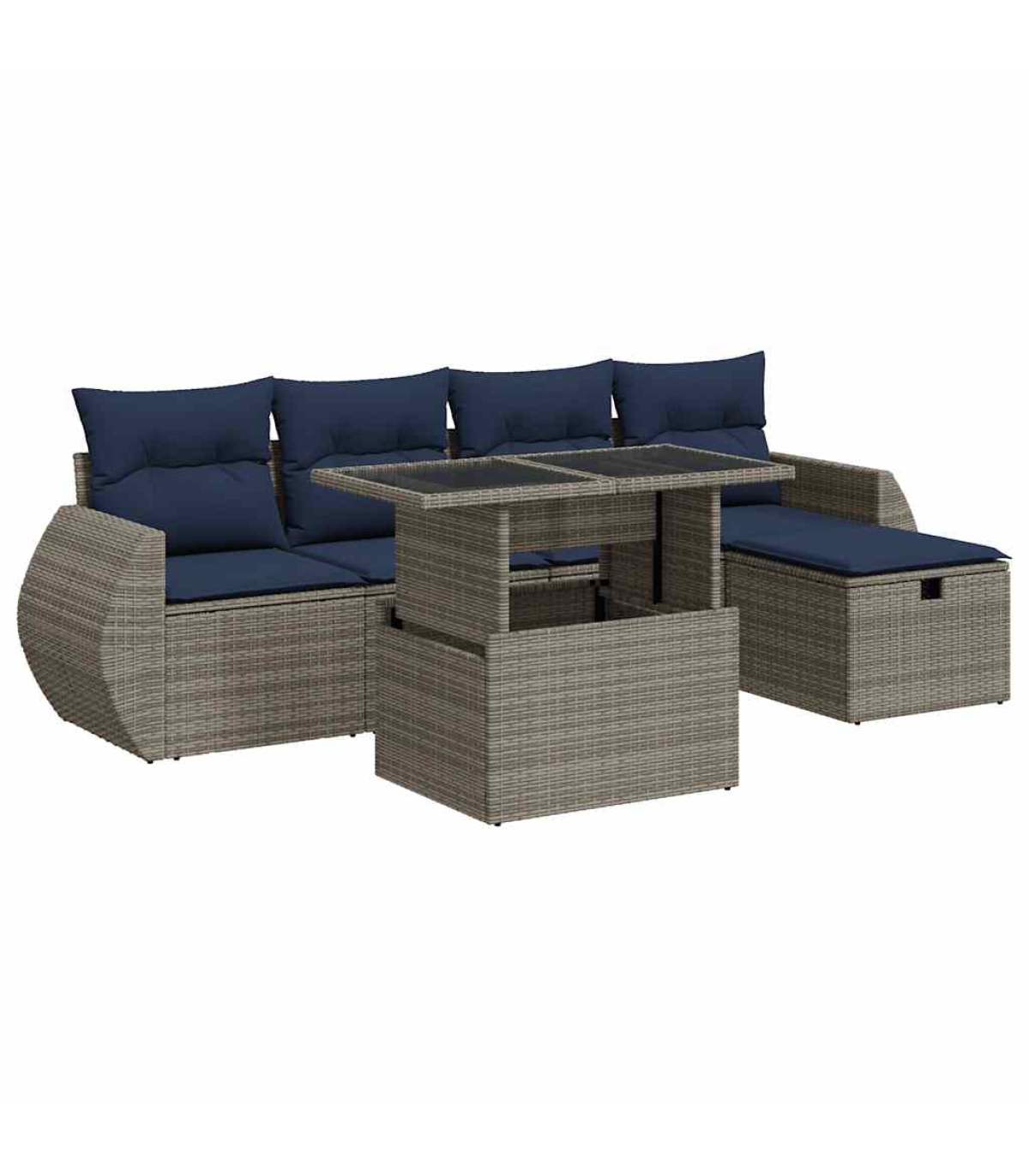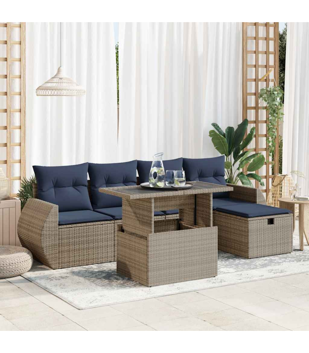 vidaXL 6 Piece Garden Sofa Set with Cushions Brown Poly Rattan Acacia