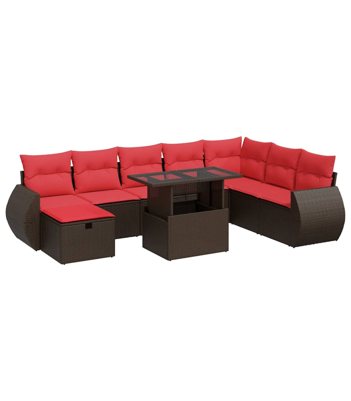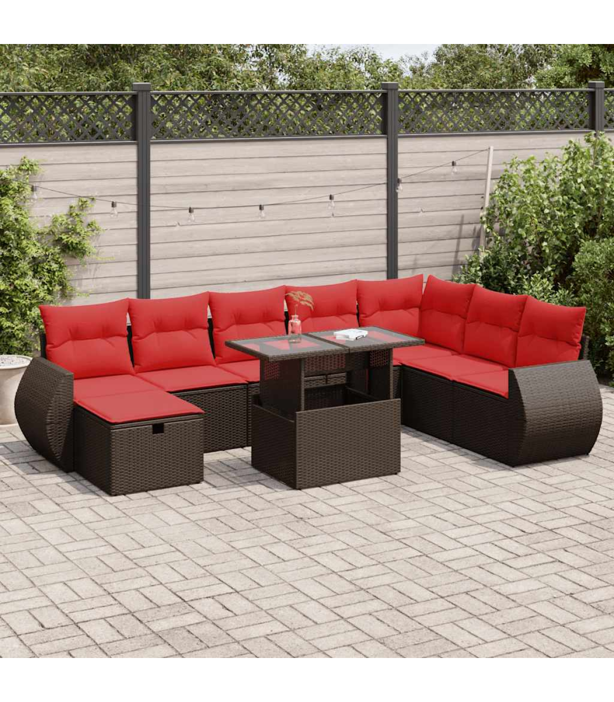 vidaXL 9 Piece Garden Sofa Set with Cushions Black Poly Rattan Acacia