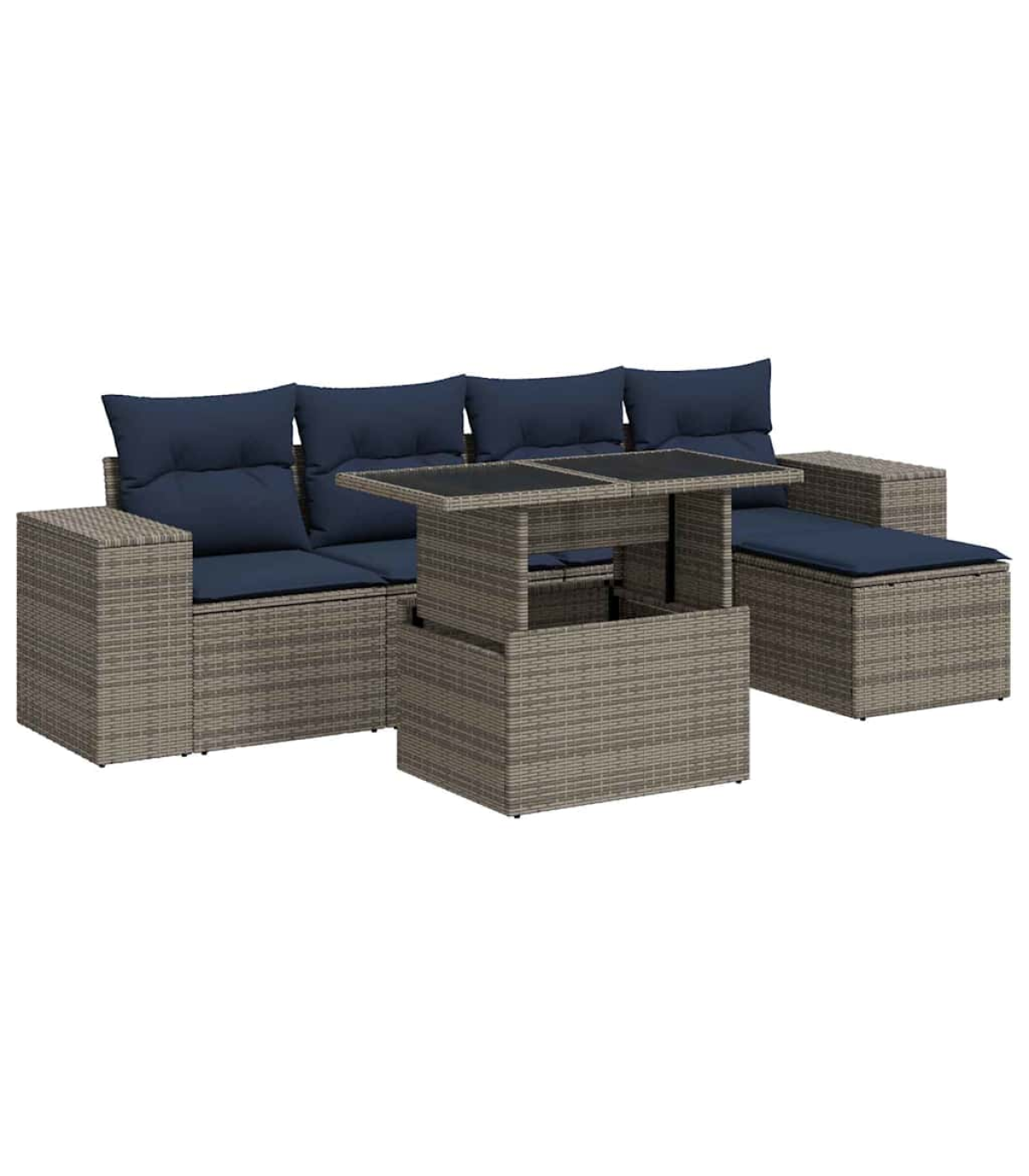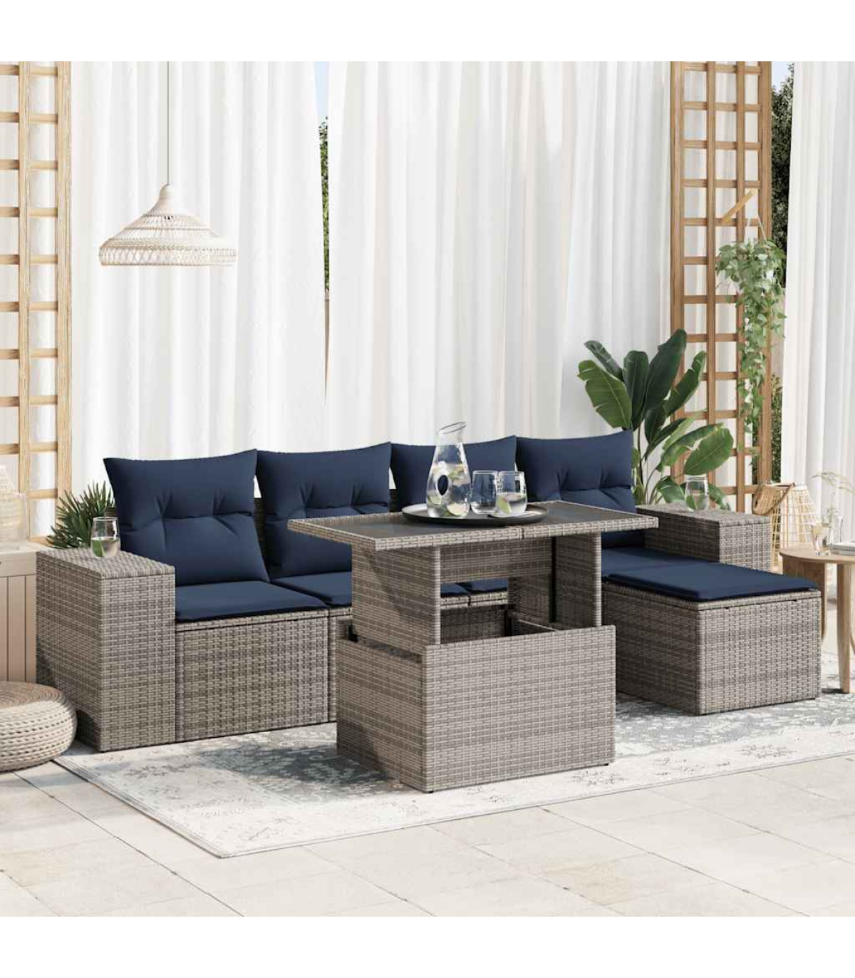 This garden sofa set is the perfect addition to your backyard, terrace, or patio, providing a comfortable and inviting space for chatting with family and friends or simply relaxing and enjoying the outdoors.Durable material: PE rattan, also known as poly rattan, is a strong, low-maintenance synthetic material that looks like natural rattan. It's lightweight, easy to clean, and commonly used for outdoor furniture due to its durability and weather-resistant properties.Storage function with water-resistant bag: Each garden seat features storage space under the seat, complete with a water-resistant bag for storing cushions, toys, and other items. The inner bags have a top cover and can be securely fastened to the seats with hook-and-loop fasteners for added stability.Removable and washable cover: These seat cushions feature removable covers for easy washing and maintenance.Modular design: This outdoor furniture set has a modular design, making it completely flexible and easy to move around, so you can create a customised outdoor furniture arrangement.Good to know:To make sure your outdoor furniture stays beautiful, we recommend protecting it with a waterproof cover.