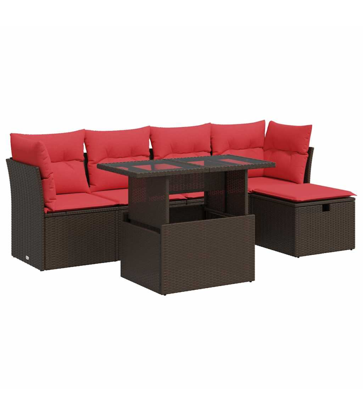 vidaXL 6 Piece Garden Sofa Set with Cushions Brown Poly Rattan Acacia